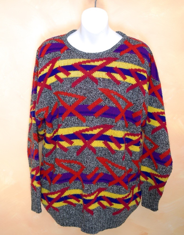 как выглядит Mens Vintage 80s/90s In Design Sweater - Geometric Design - Sz M фото