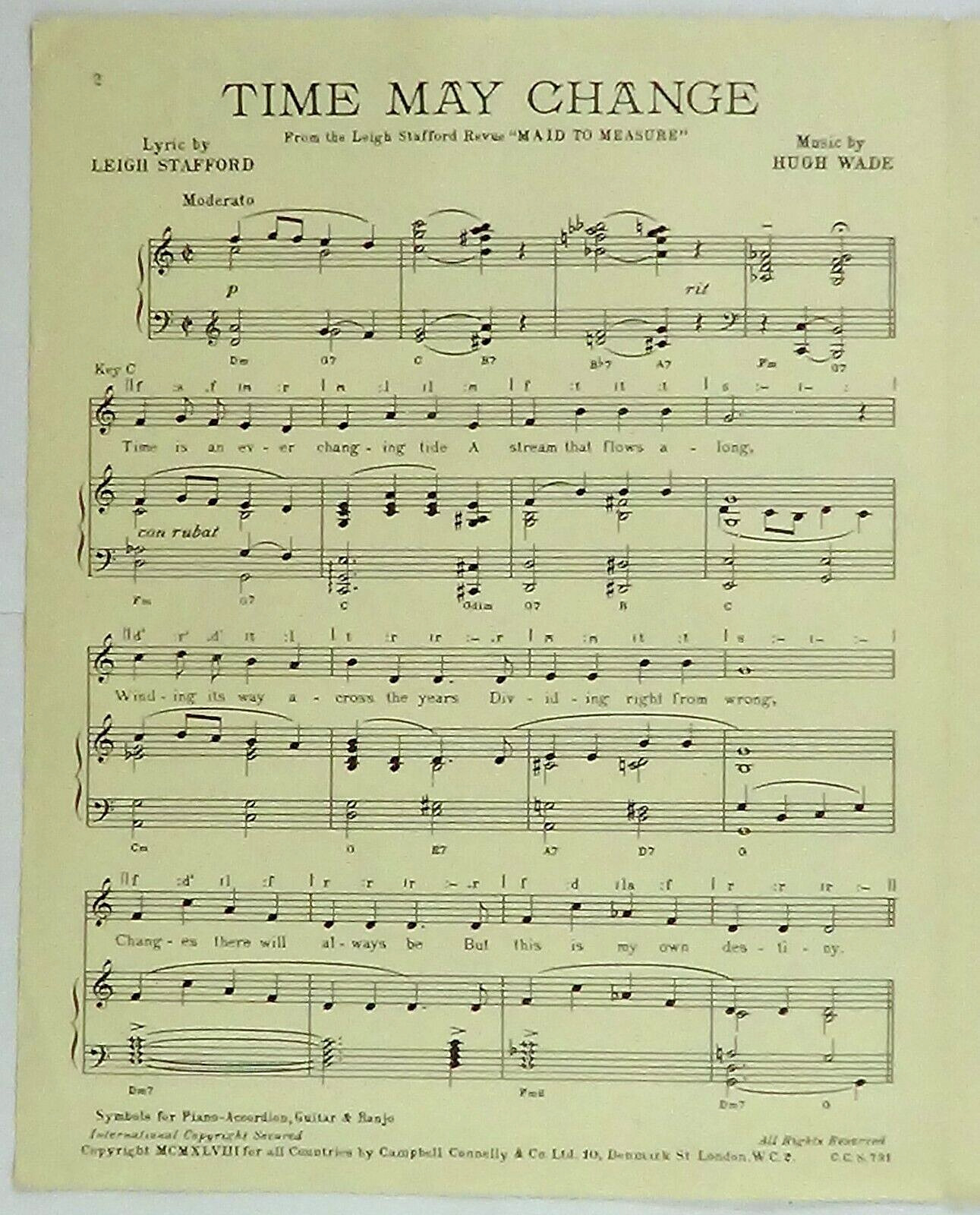 как выглядит Time May Change by Wade Stafford Piano Vocal Sheet Music Maid To Measure фото