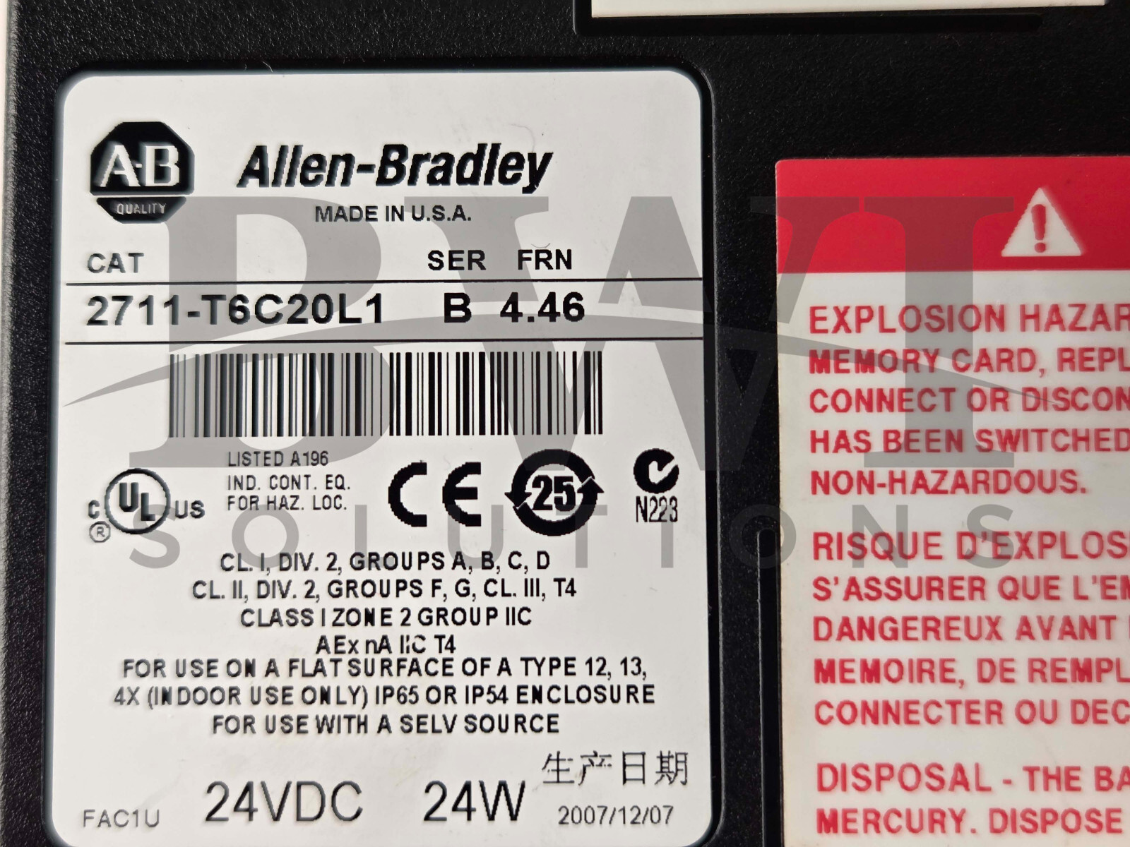 Allen Bradley 2711-T6C20L1 /B PanelView 600 ENet/Touch Terminal 2711T6C20L1