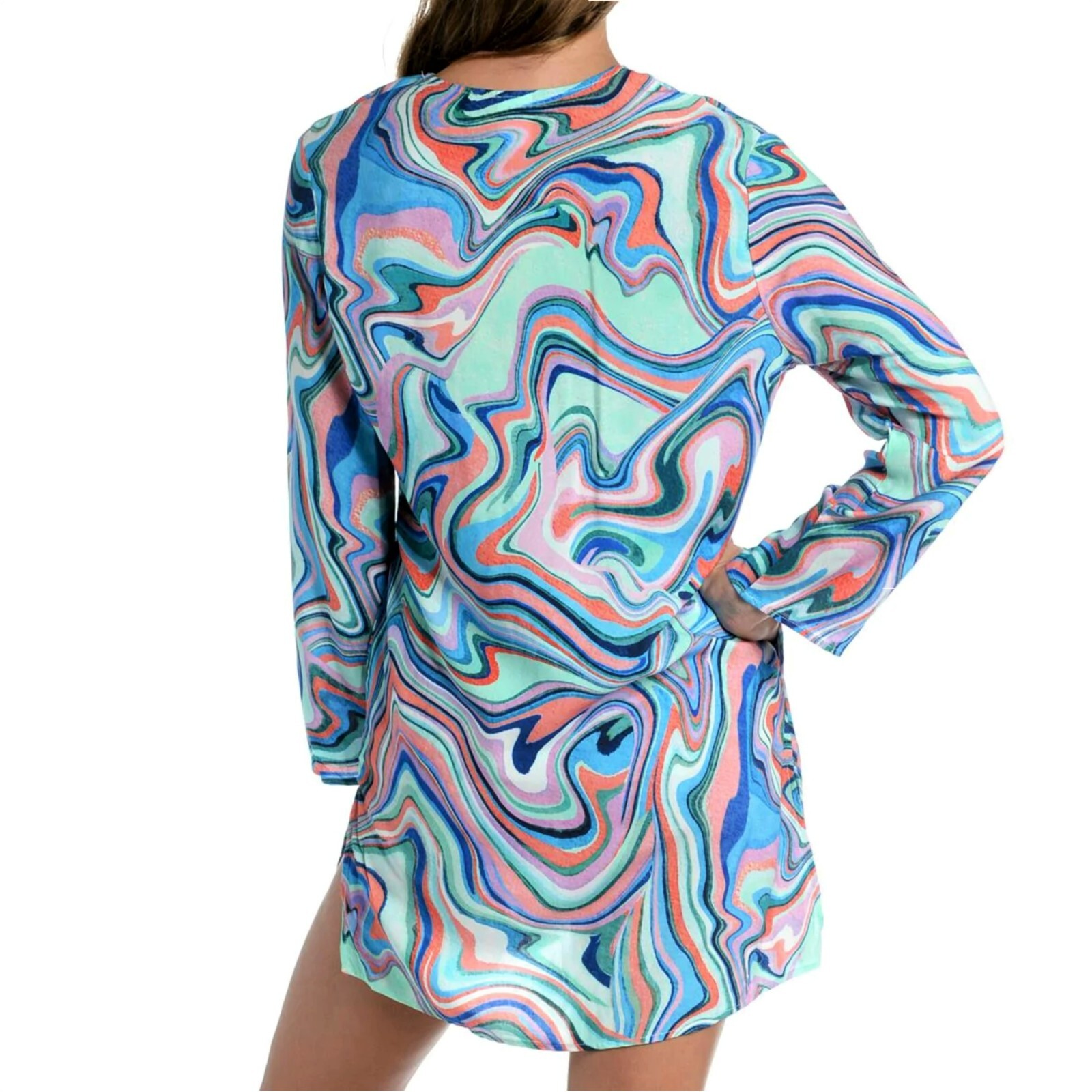 как выглядит NWT La Blanca Swirl Print Long Sleeves Lace Up Beach Pool Tunic Cover Up S,M,L фото