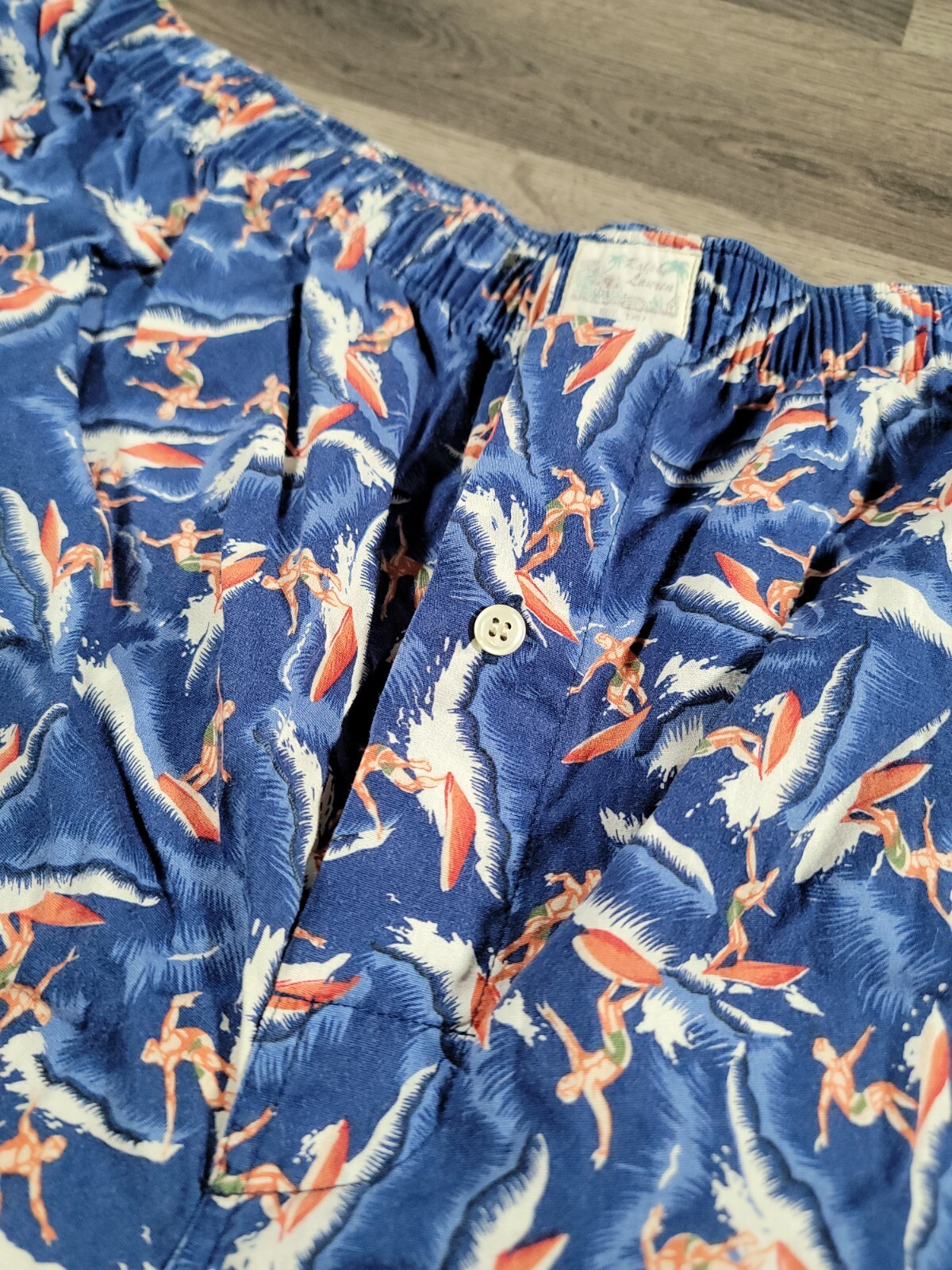 как выглядит Rare Vintage 90s Polo Ralph Lauren Boxer Briefs Size XL Blue Surfing All Over фото