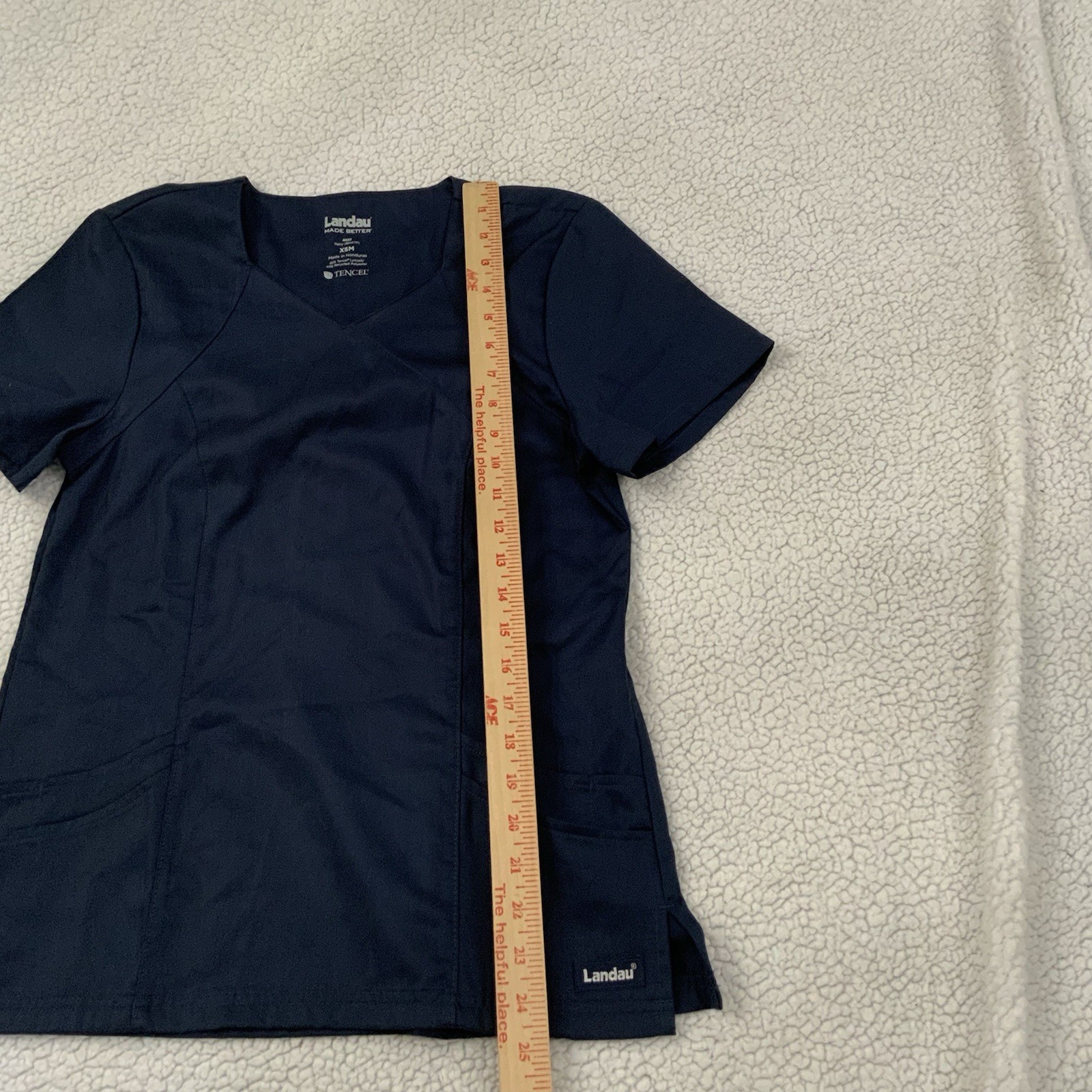 как выглядит LANDAU Women s XS Scrub Top Navy Blue Medical V Neck Stretch 4022 New фото
