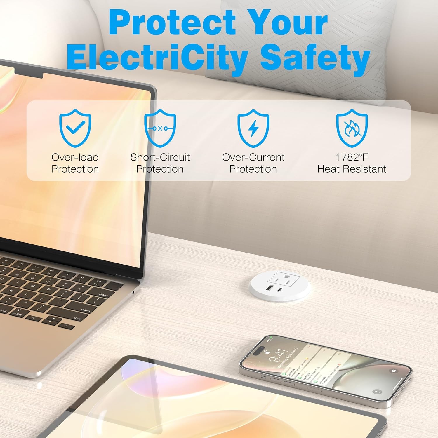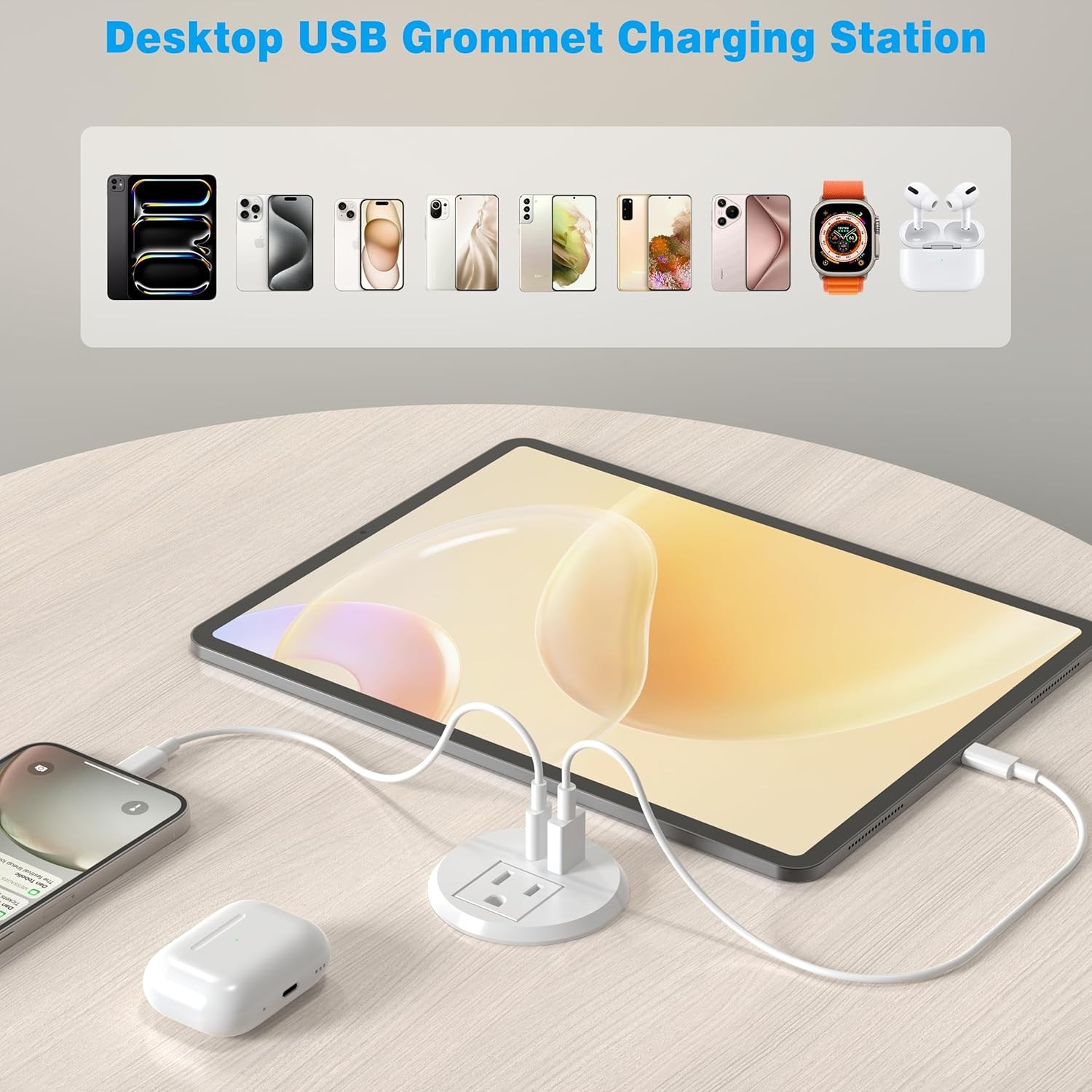 как выглядит VILONG 2 inch Desk Power Grommet Outlet, Recessed Outlet USB-C, White фото