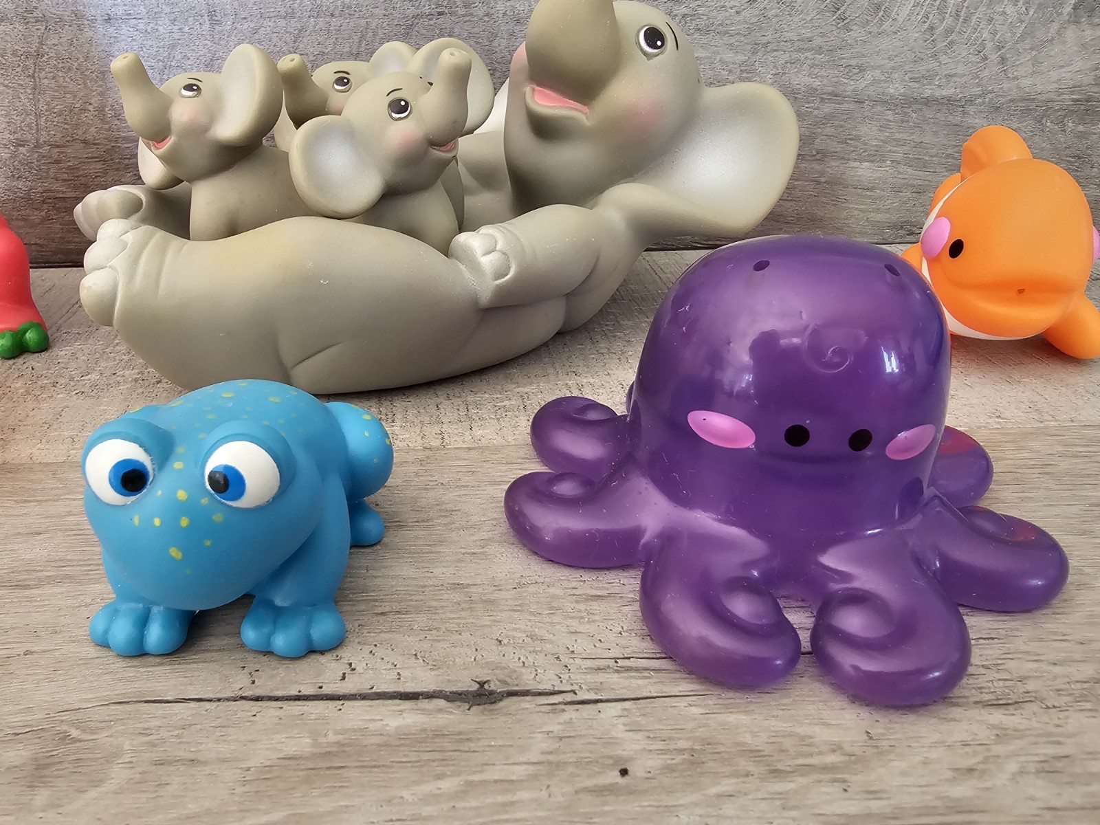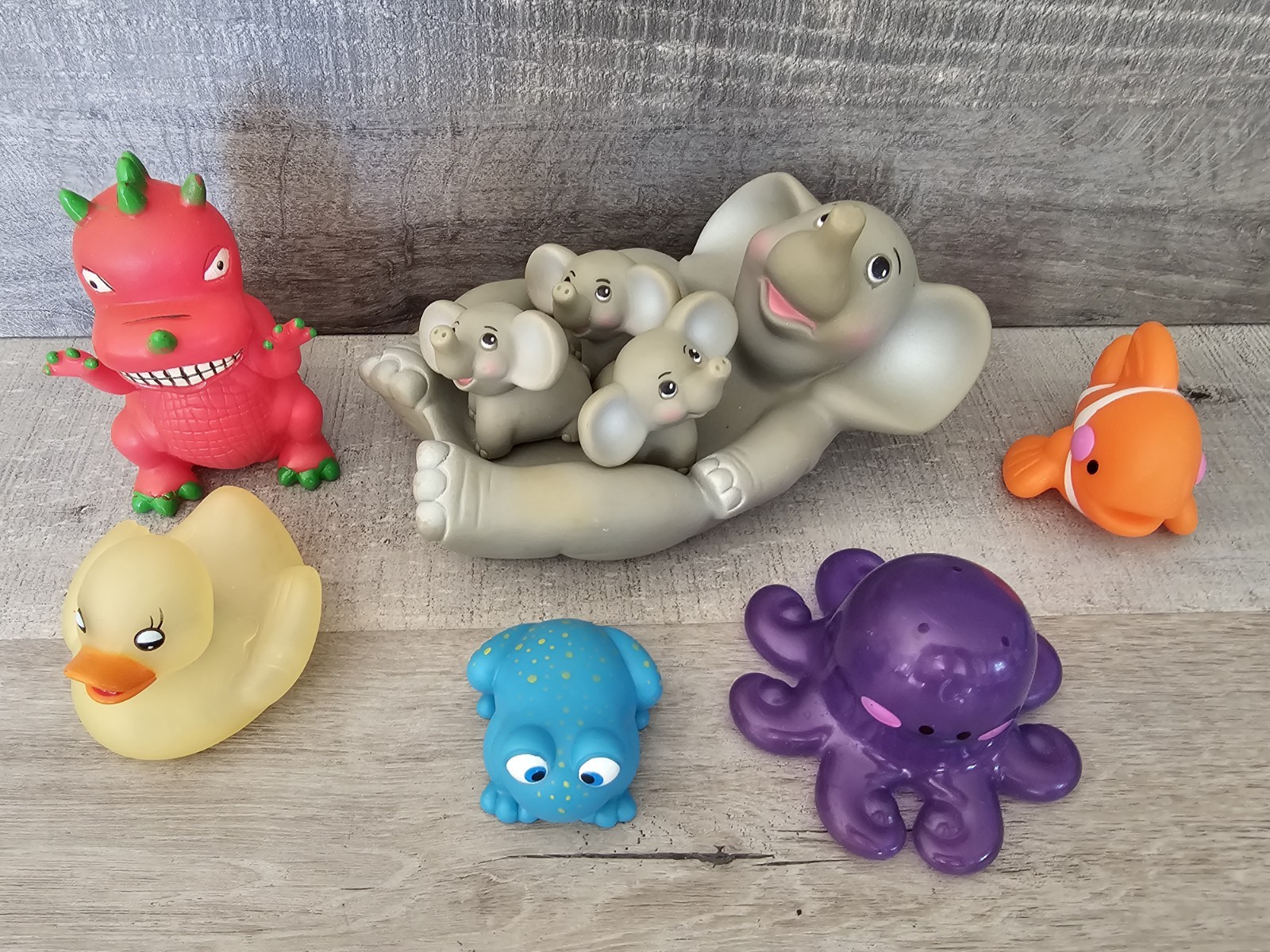 Vintage Bath Toy Kids Pretend Play Elephant Dinosaur Fish Frog Duck Vinyl