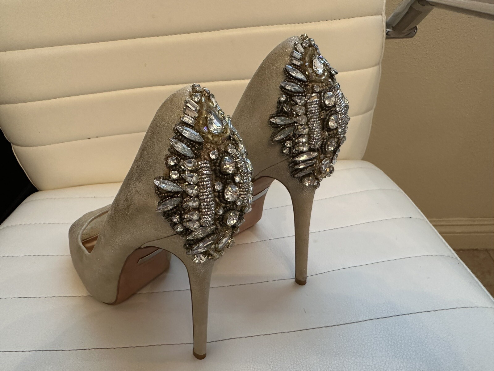 Badgley Mischka Size 8.5 M Gorgeous Golden Ivory With Rhinestone High Heel