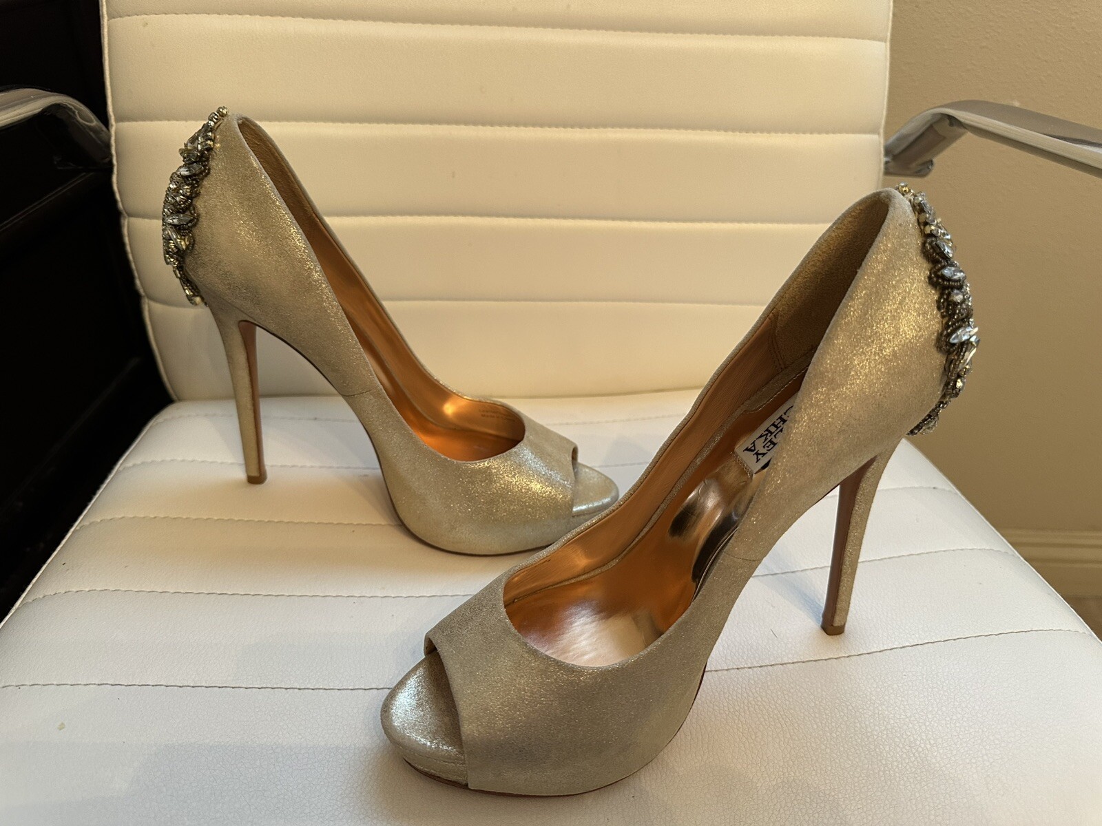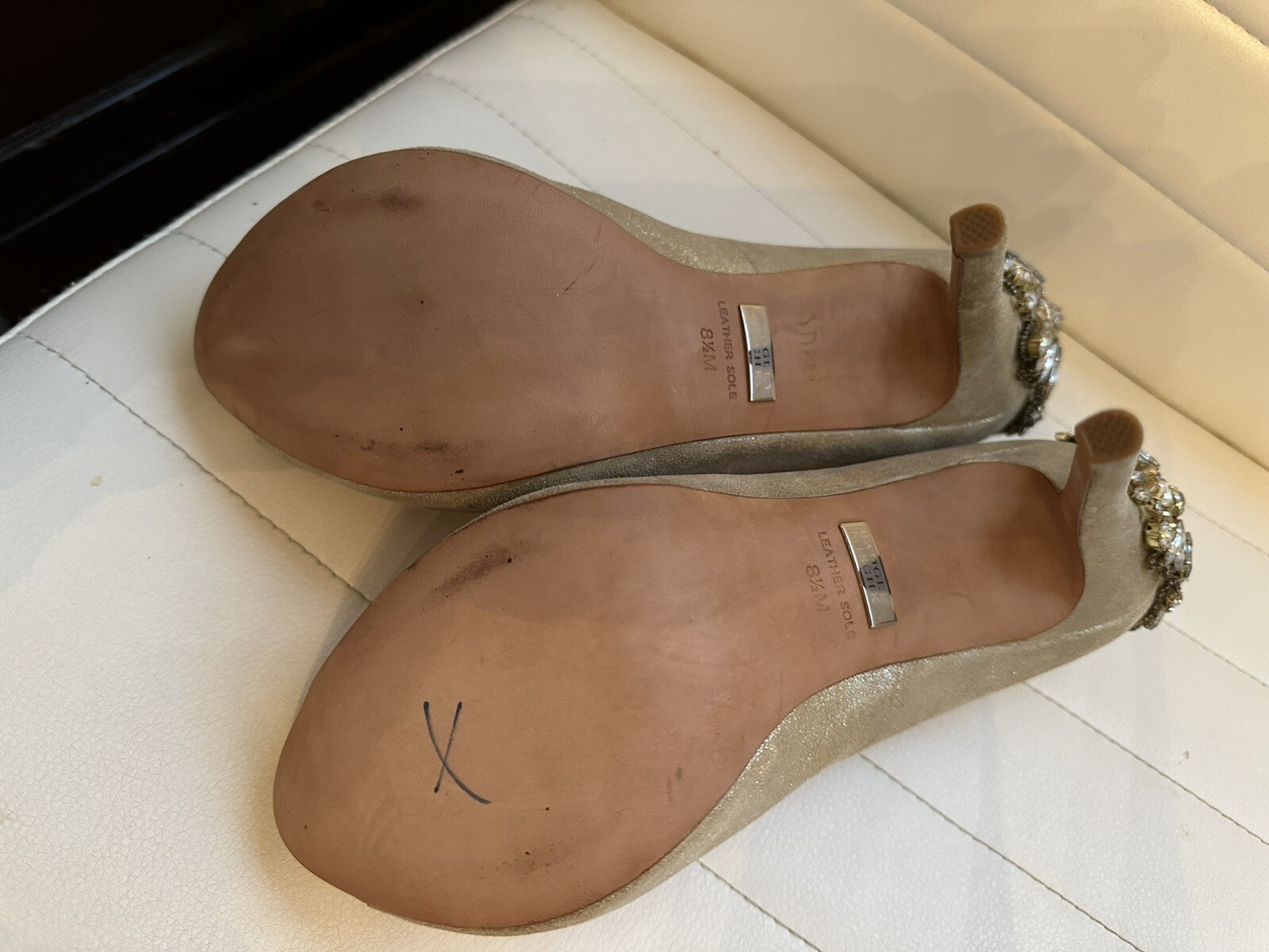 как выглядит Badgley Mischka Size 8.5 M Gorgeous Golden Ivory With Rhinestone High Heel фото