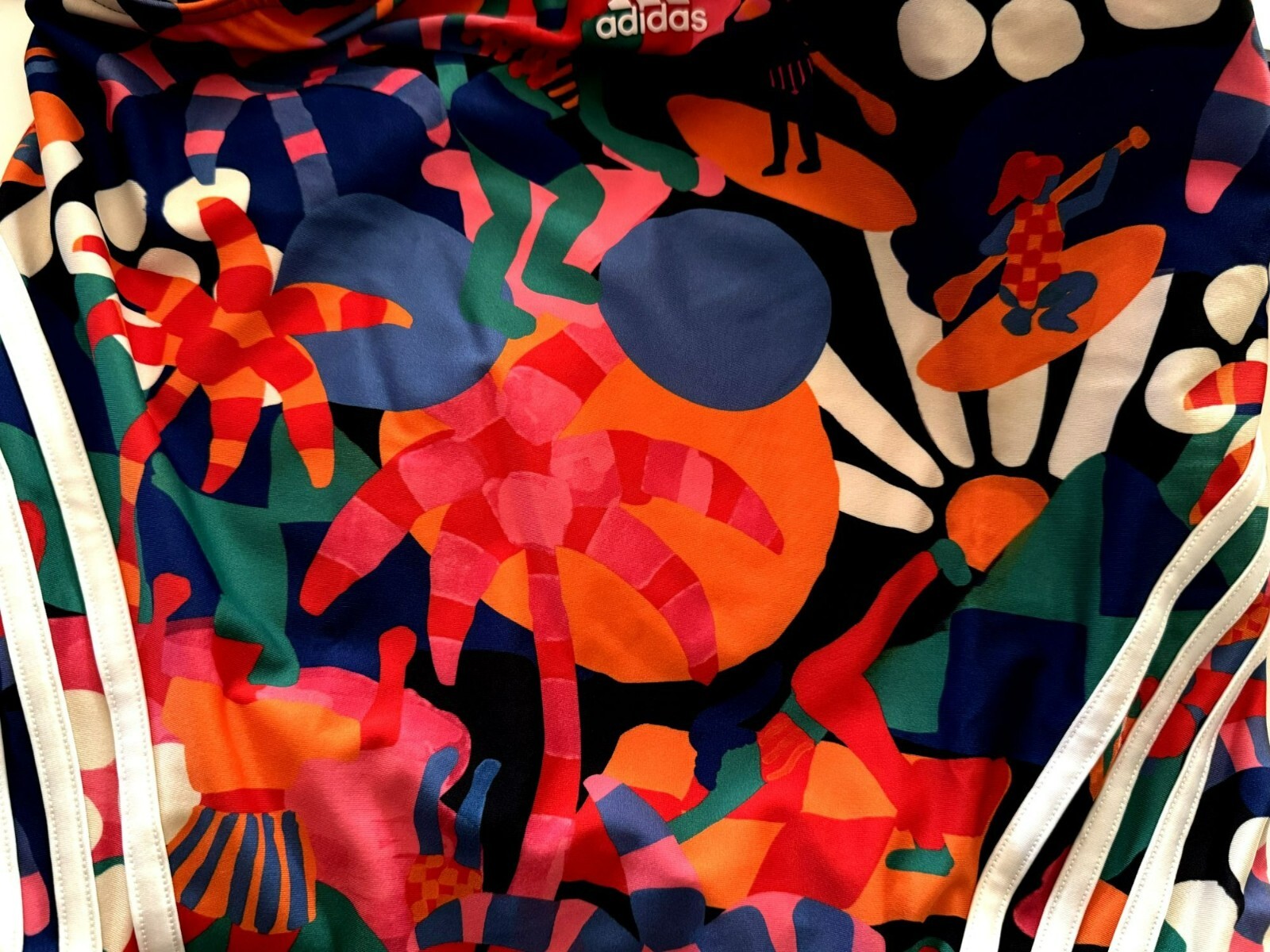 как выглядит Farm Rio Adidas Multi Tropical Island Party Colorful Graphic Swimsuit Sz14 NEW фото