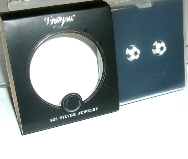 Soccer Ball Children Girls Stud Earrings 925 Silver Jewelry - Rubber Push Back