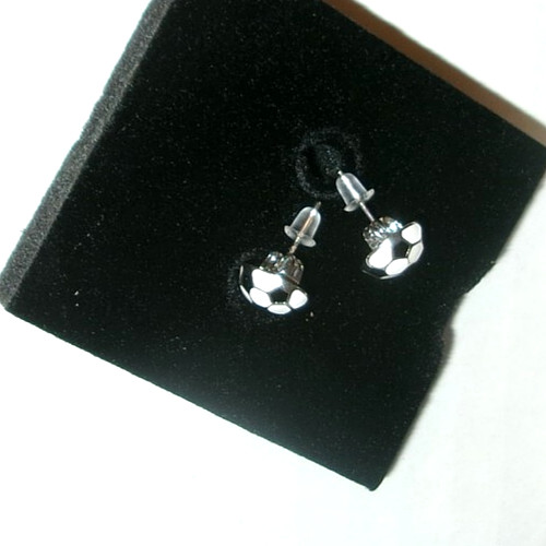 как выглядит Soccer Ball Children Girls Stud Earrings 925 Silver Jewelry - Rubber Push Back фото