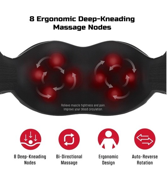 как выглядит FitRx Black Shiatsu 3D Cordless Heat Ergonomic Neck Back And Shoulder Massager фото