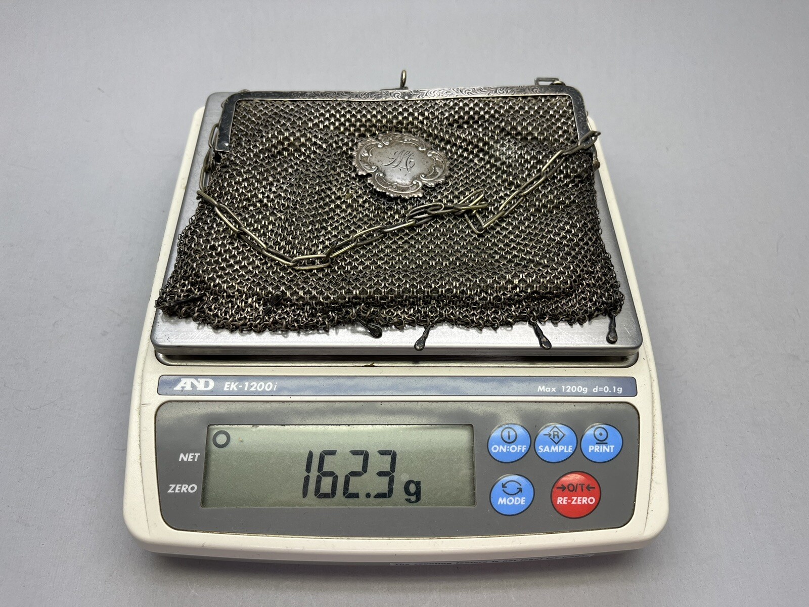 Antique German Silver Mesh Coin Chain Purse w/ Monogrammed Medal 162.3 Grams