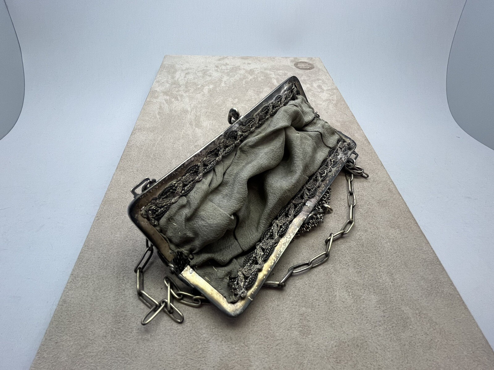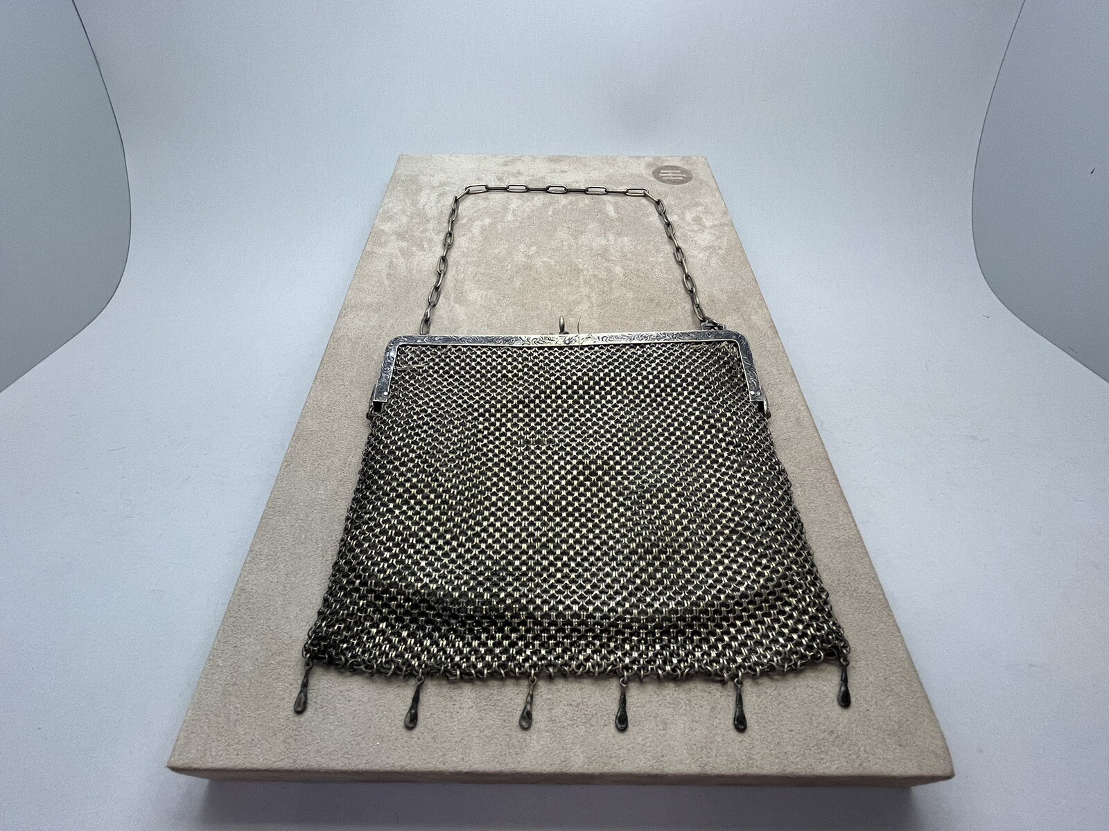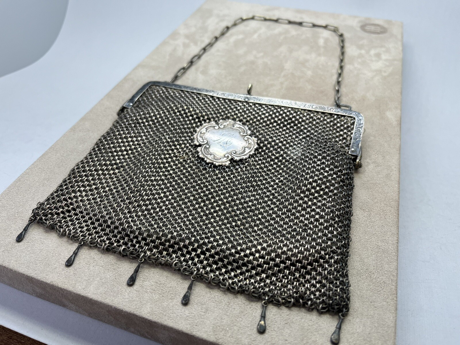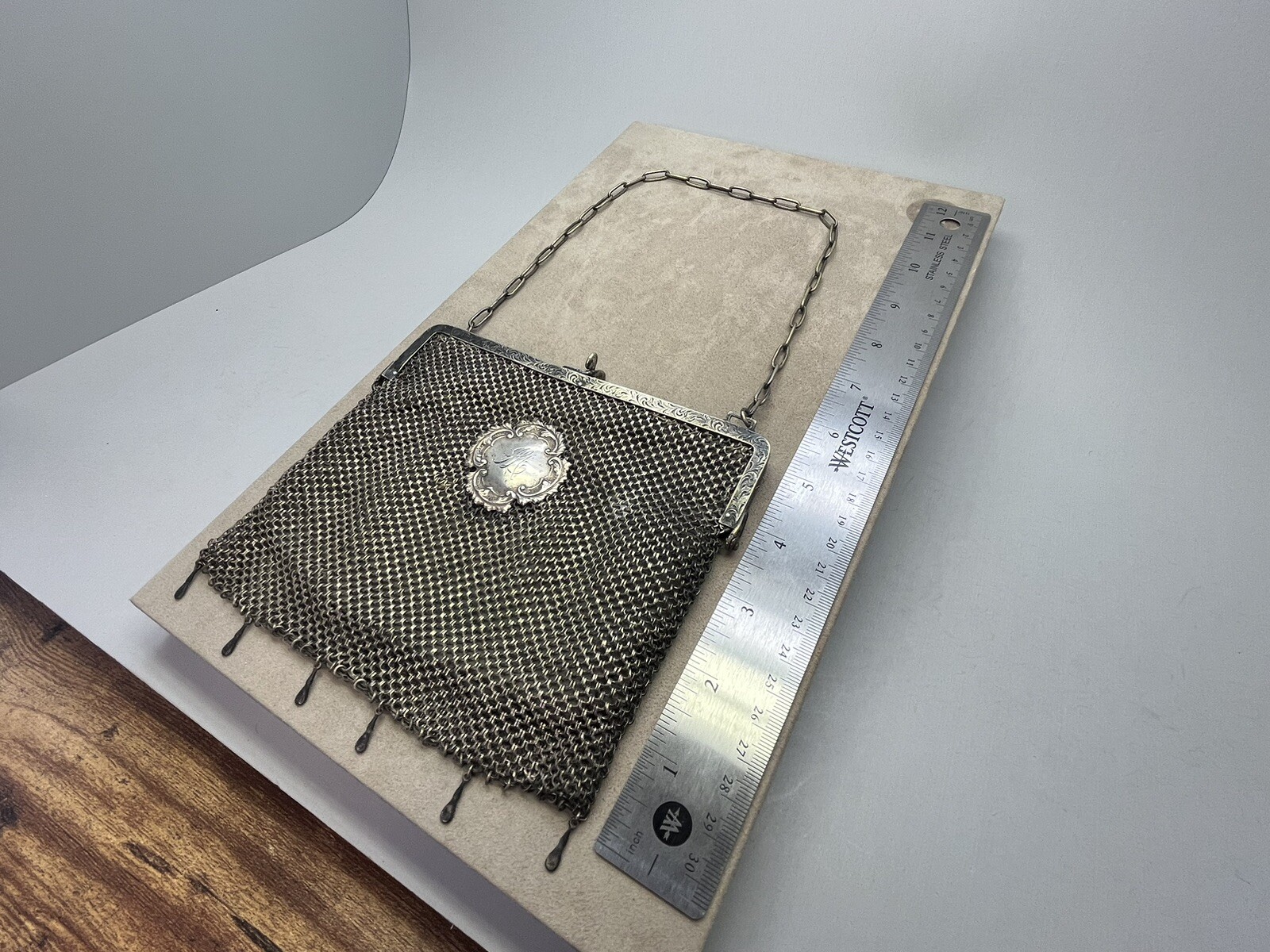 как выглядит Antique German Silver Mesh Coin Chain Purse w/ Monogrammed Medal 162.3 Grams фото