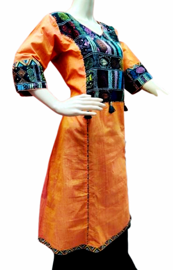 Материал: Cotton, Beautiful Eye-catchy Fine Kantha Hand Embroidery, Kantha Stitch on Front and Sleeves, Prime quality Mangalgiri Cotton Fabric