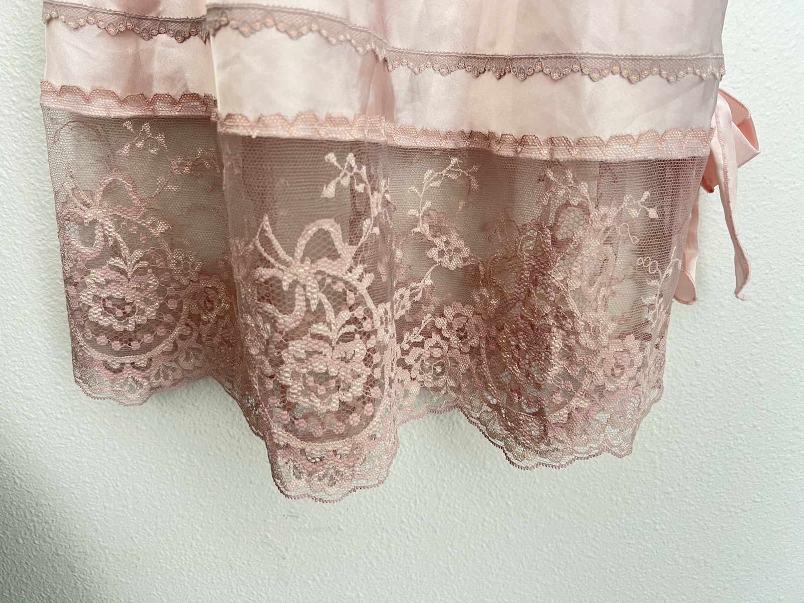 Vintage Slip Dress Blush Pink Satin Lace Floral Victorian Edwardian Coquette Bow