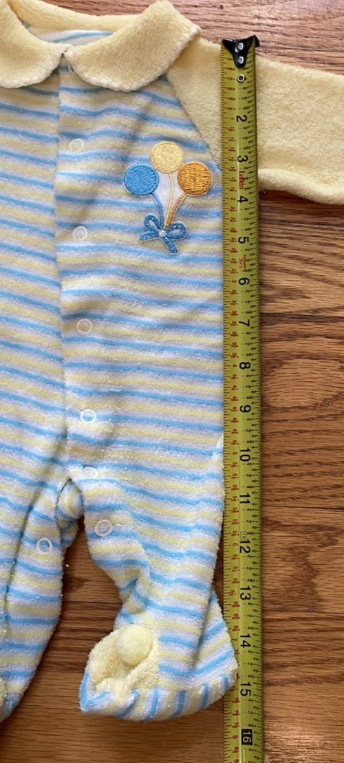 Vintage Yellow Blue Striped Balloon Footed Sleeper Jammies Baby Infant Newborn