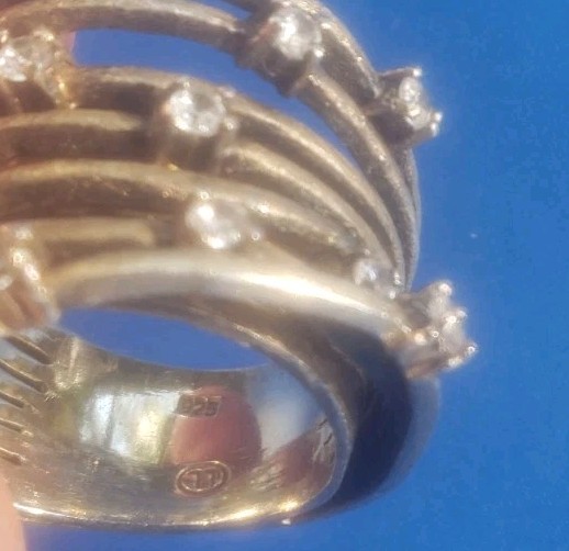 как выглядит Vintage Sterling Silver 925 Artisan Ring with Clear White Stones. Size 6.5 фото