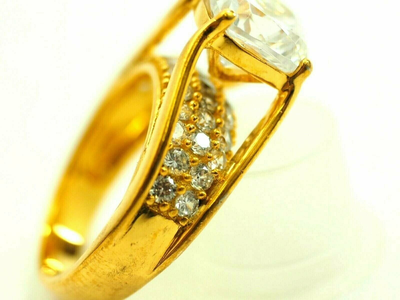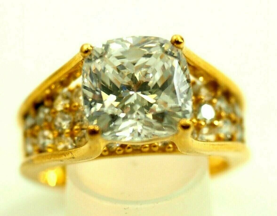 Ladies Raised Solitaire Cubic Zircon Pave Vermeil Gold over Sterling Silver sz 9