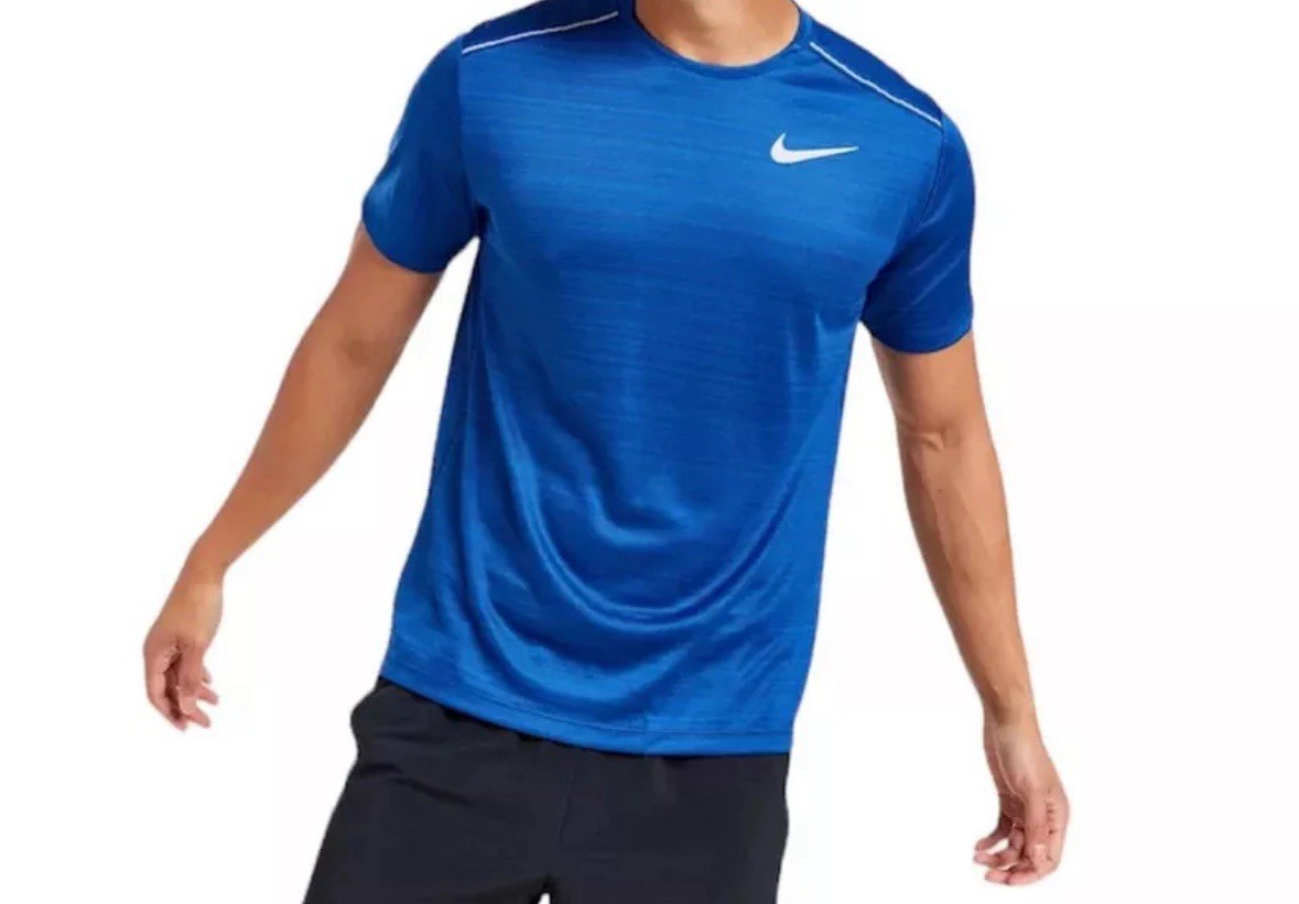 Nike Dri-FIT Miler Men's Short Sleeve Running Training Gym Shirt Top Blue Large