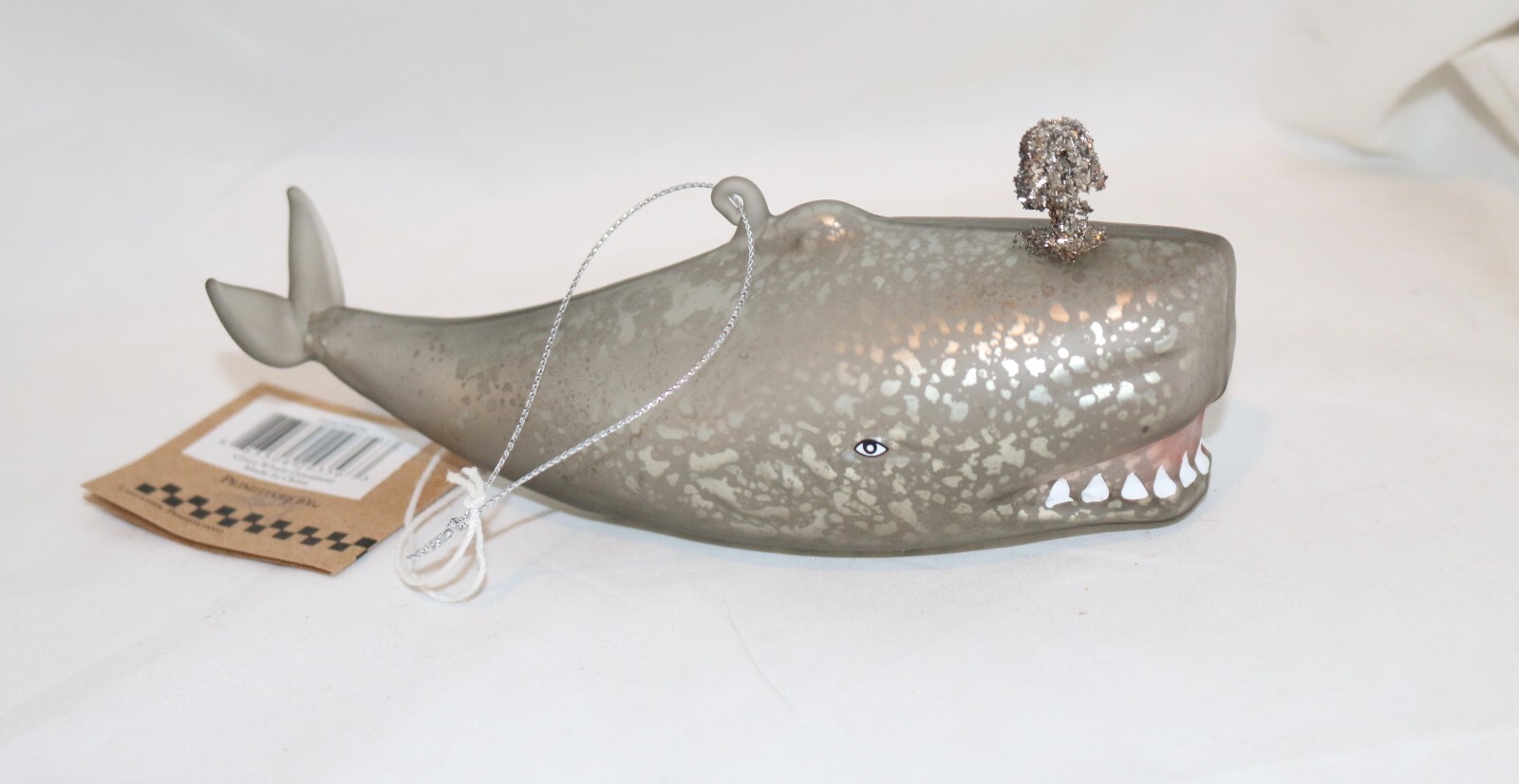 Primitives By Kathy Whale Glass Ornament Holiday Christmas Beach House Decor