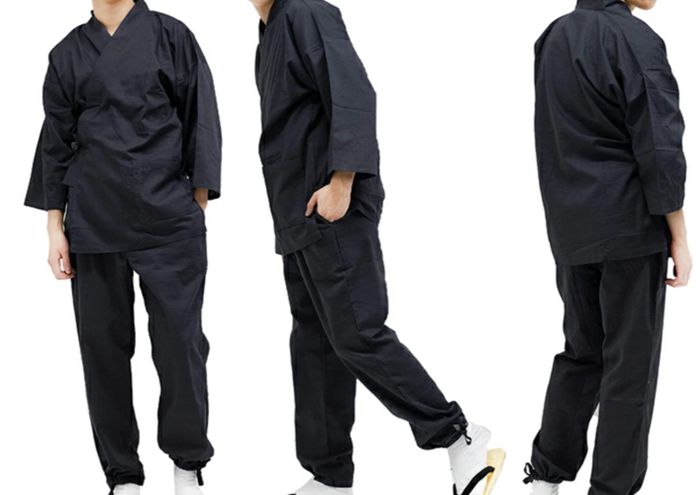как выглядит Japanese SAMUE Men Traditional Work Wear Kimono Linen Set Black from JAPAN XL LL фото