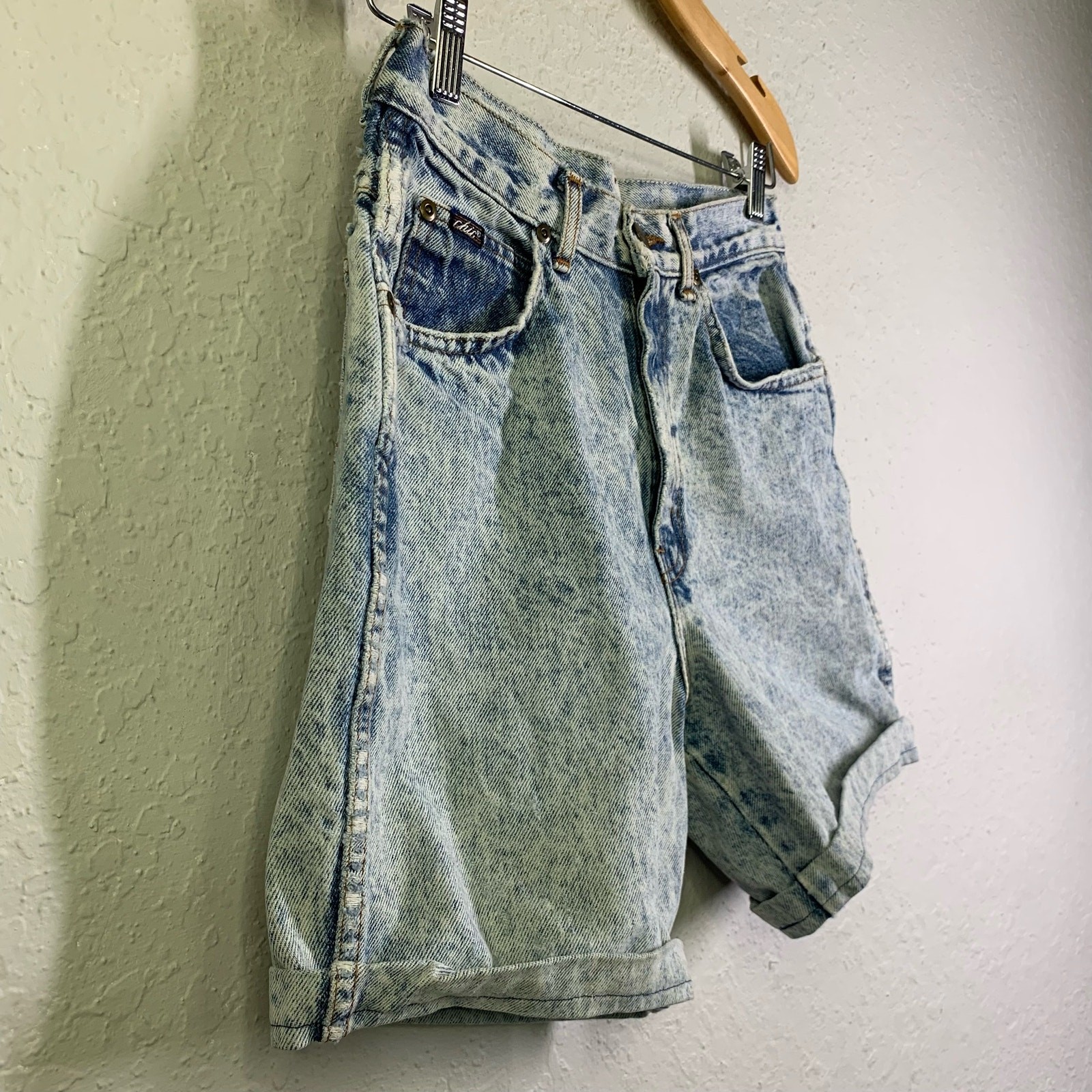 как выглядит CHIC Shorts Vintage Acid Wash High Waist 80s Y2K Rolled Cuff Retro Denim 26 фото