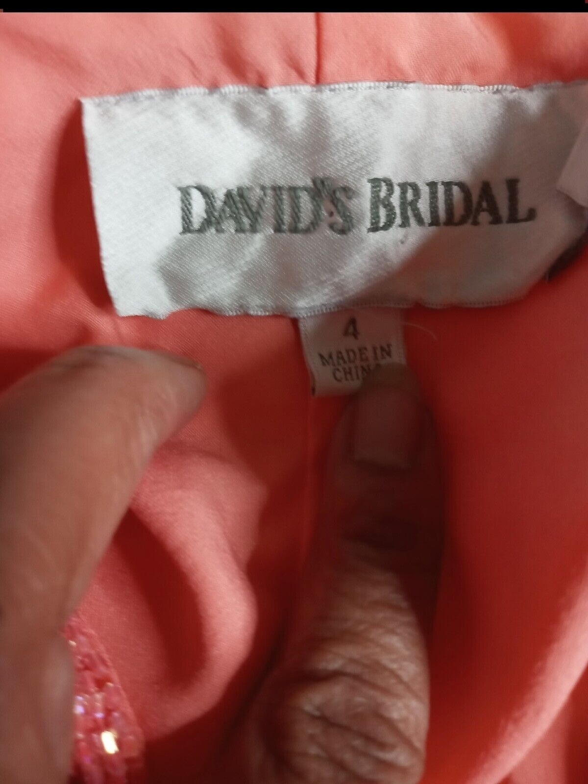 как выглядит Davids Bridal Peach Dress w/ Spaghetti Straps Keyhole Neckline, Size 4 фото
