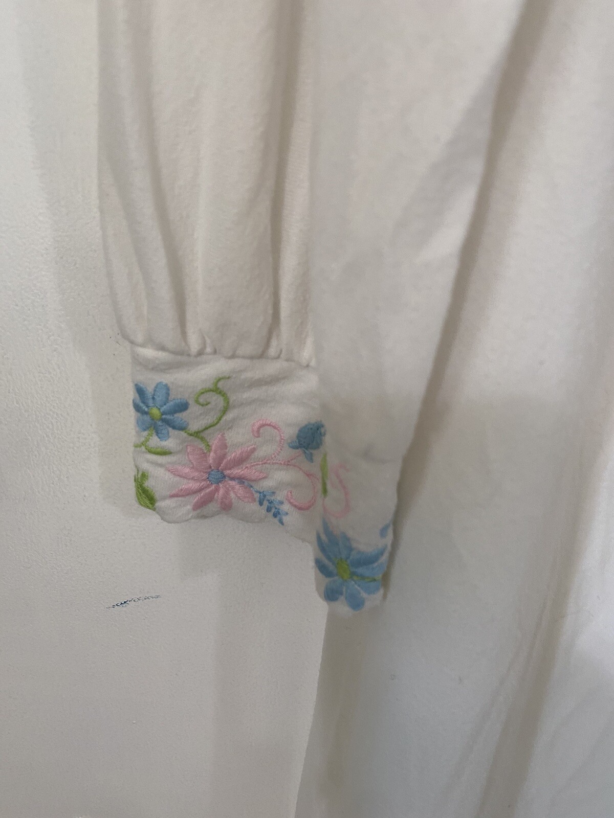 как выглядит Vintage Saramal Nightgown Size Small Big Collar White Embroidered Flowers Nighti фото