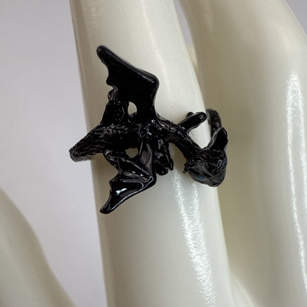 Dark Dragon Train Your Dragon Black Enamel Ring Blue Eyes Hooked Rail Size 6.75