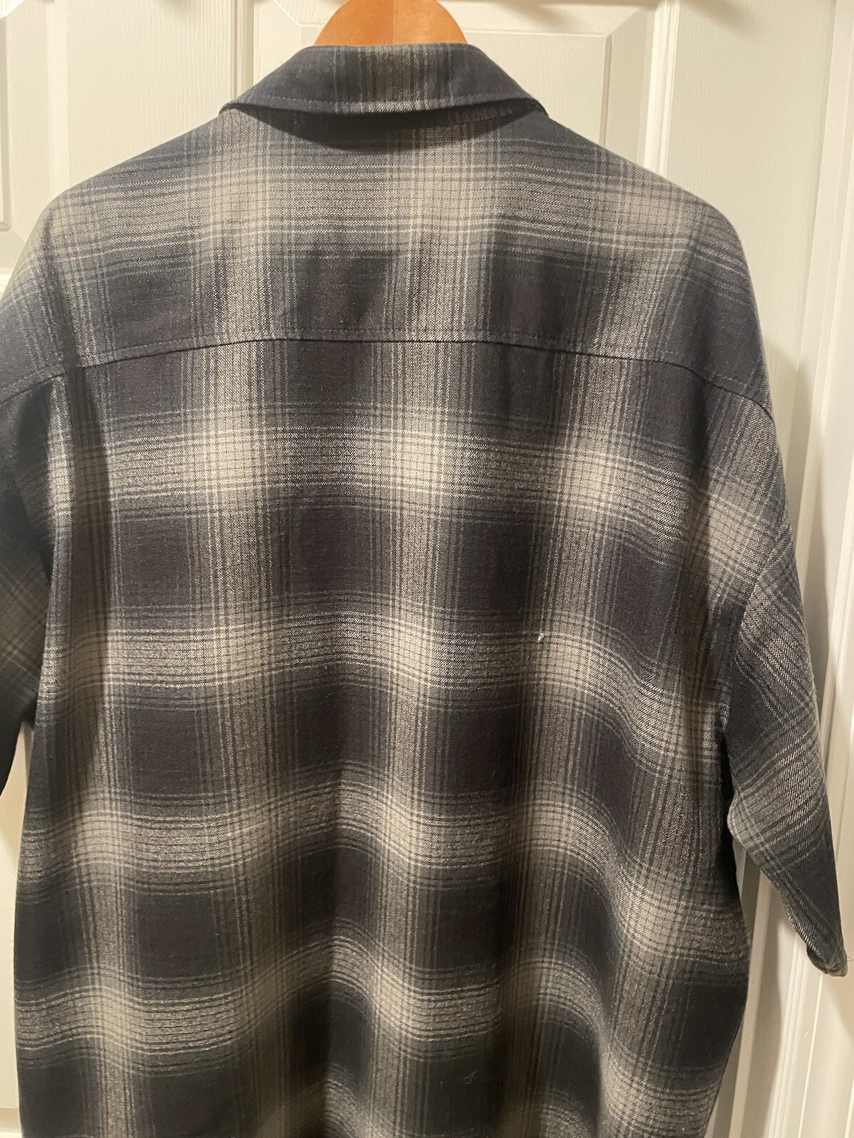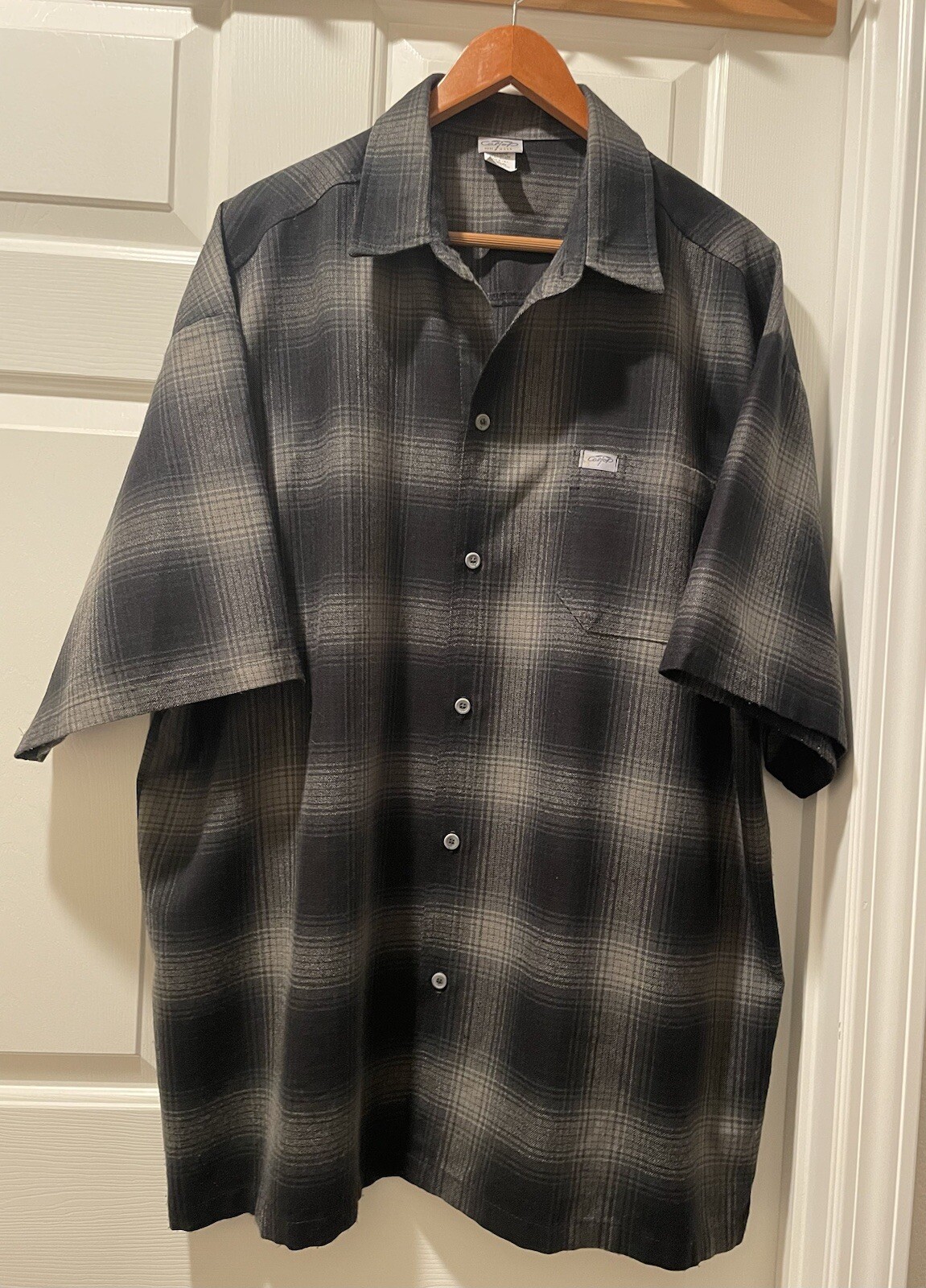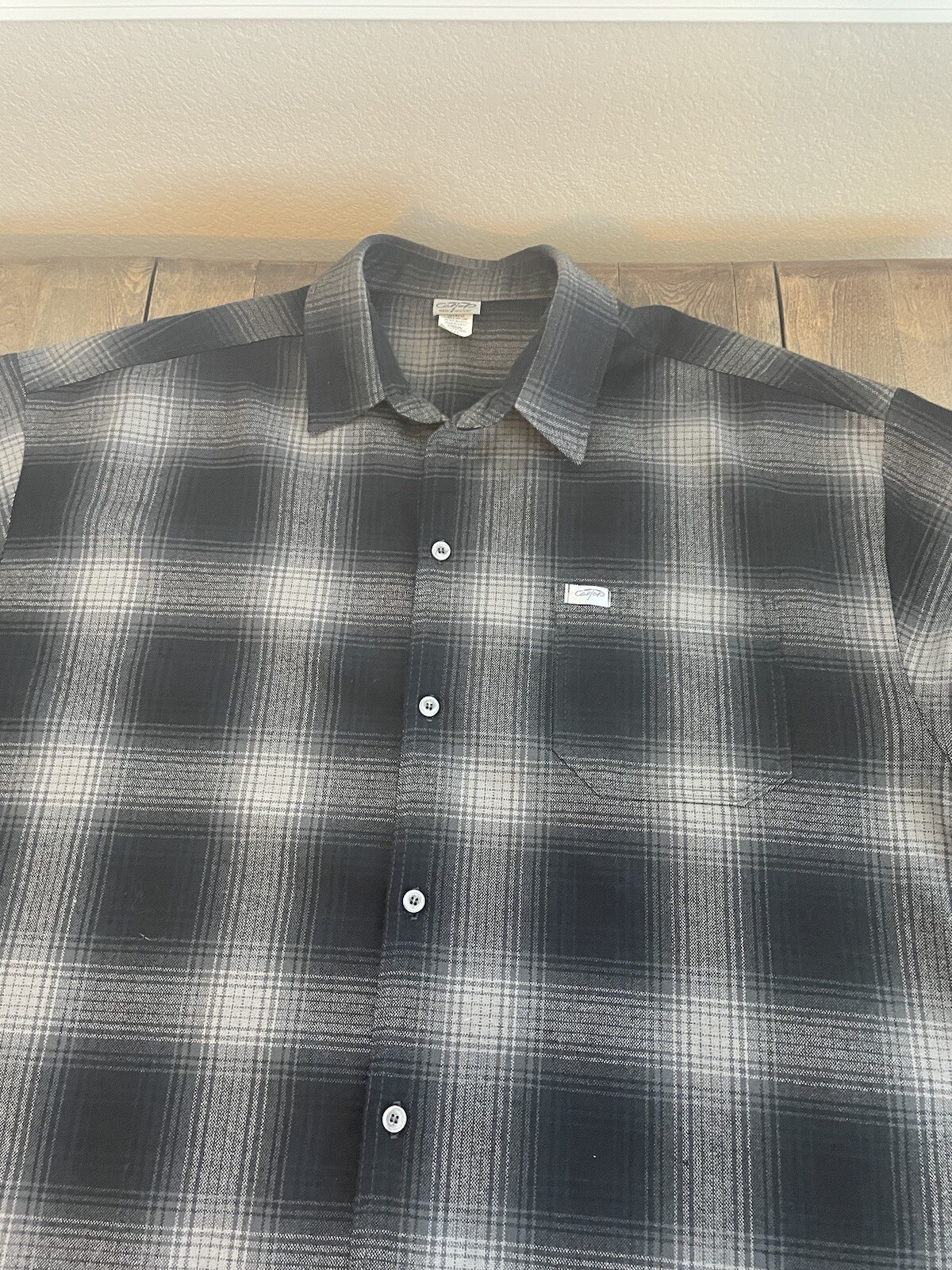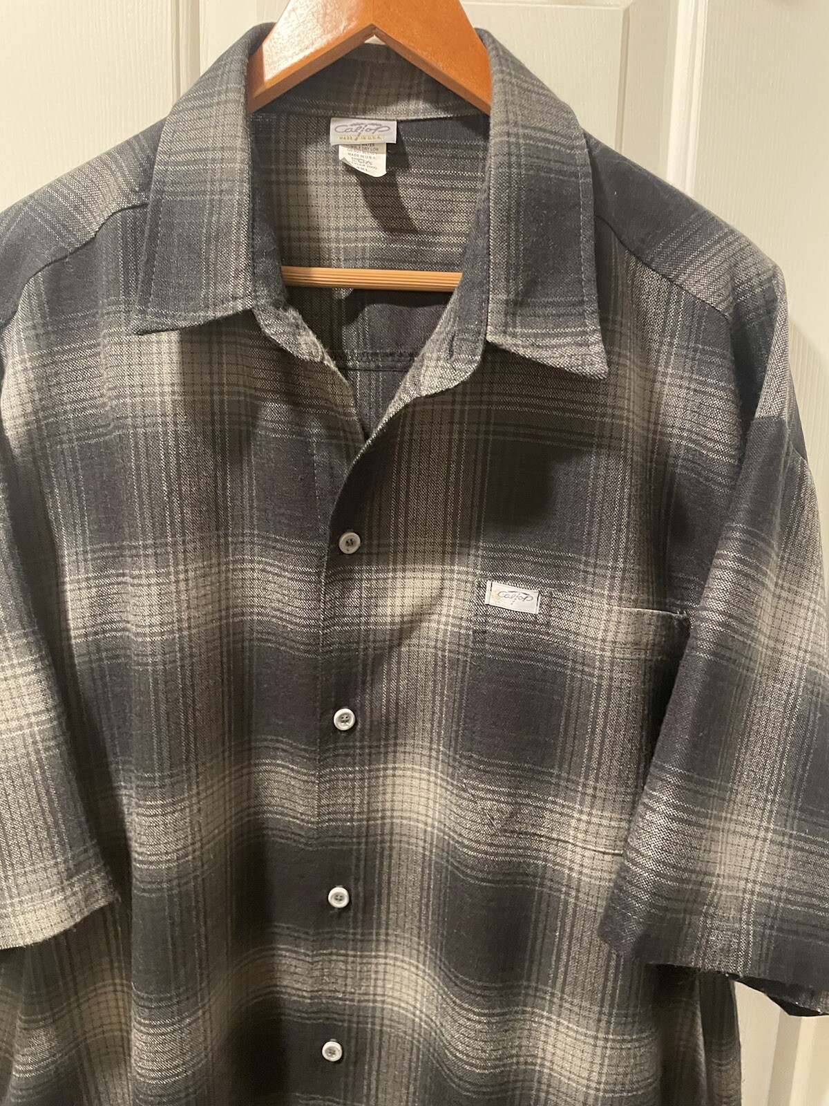 как выглядит Vtg Caltop Old School OG Chicano Flannel Shirt Mens 4XL Black Gray Sm Flaw фото