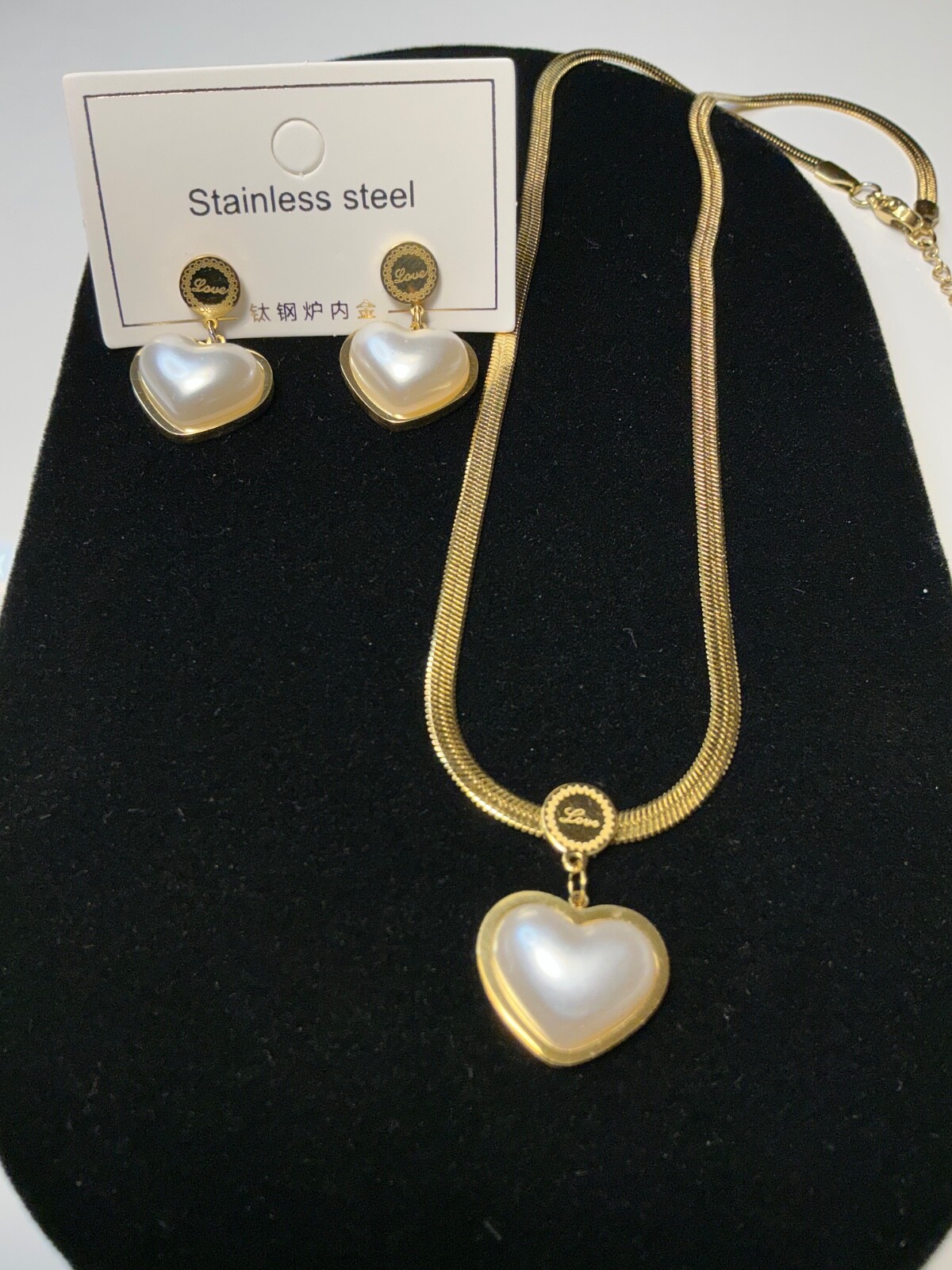 как выглядит 18K Gold Plated Stainless Steel Heart Necklace Earring Jewlery Set Gift Women фото