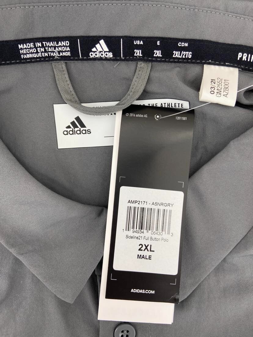 как выглядит NEW Adidas Sideline 21 Gray Primegreen Aeroready Full Button Polo Shirt Mens 2XL фото