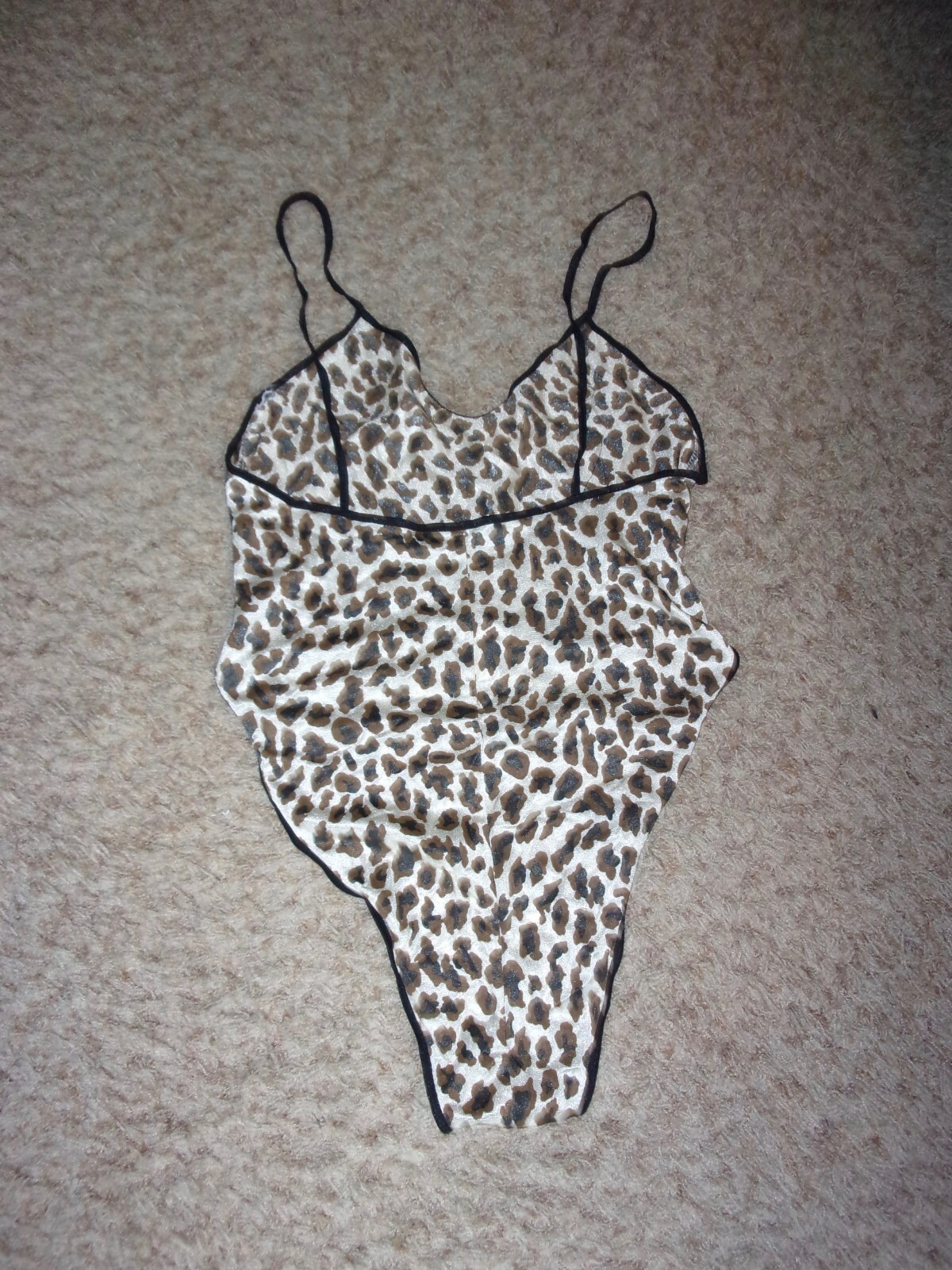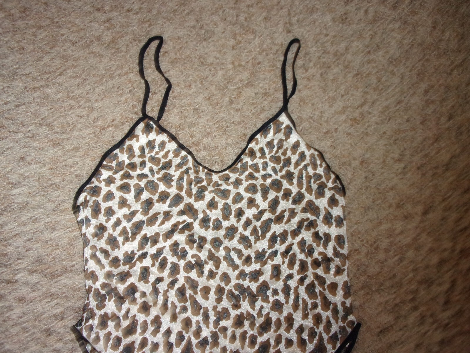 как выглядит Vintage Teddy Leopard Print USA Silky Nylon Panty Romper S 32 фото