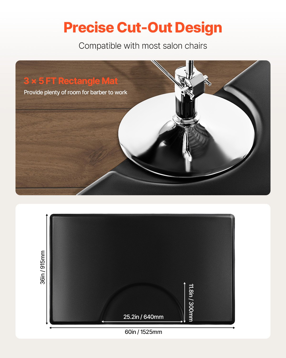 Salon Mat for Hair Stylist 3 x 5 FT Rectangle Salon Chair Mat 7/8 Thick