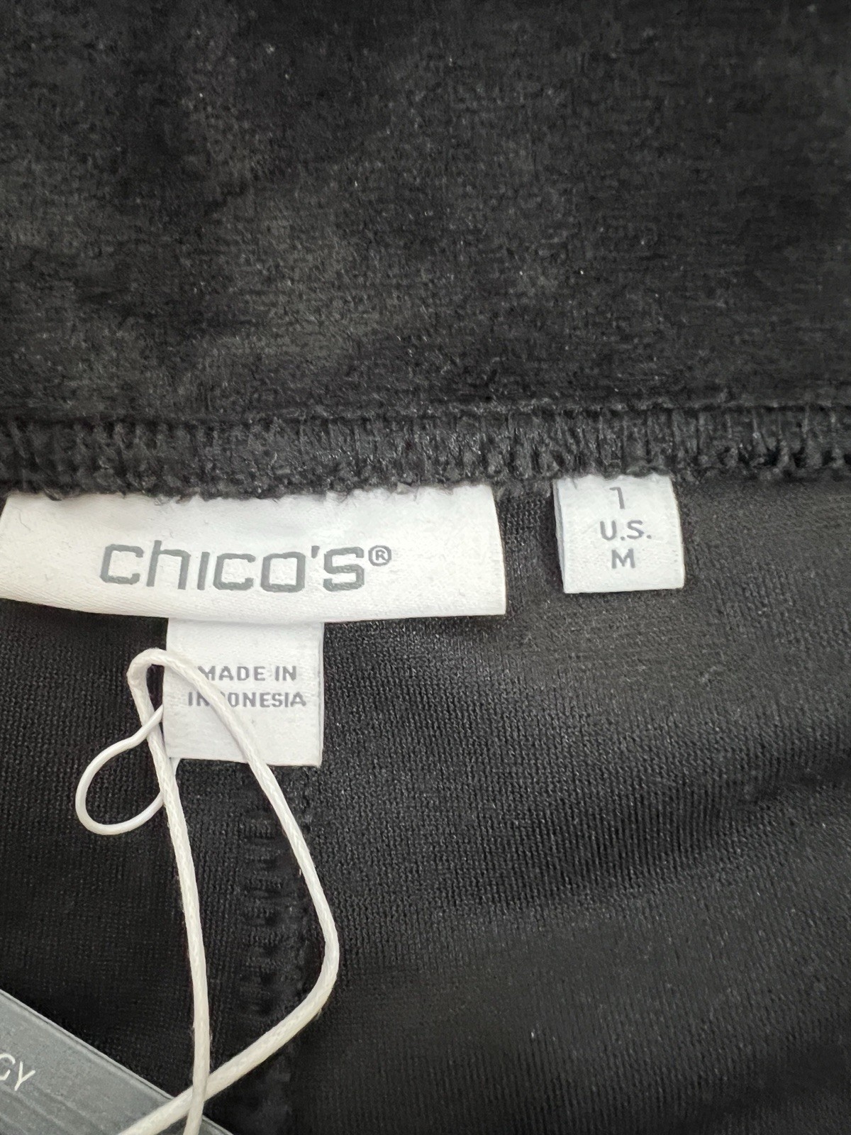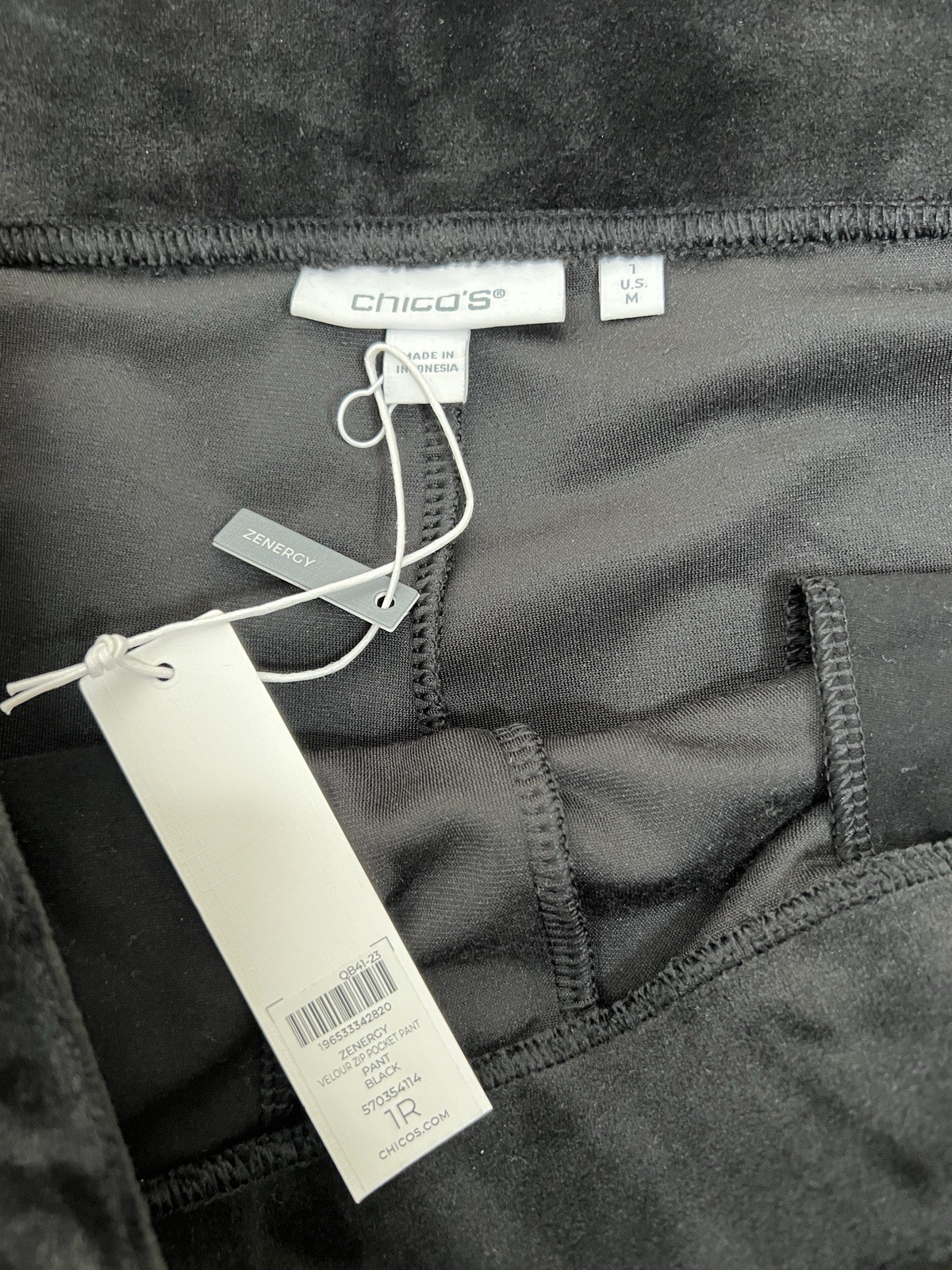 Chico's Zenergy Black Velour Zip Pocket Pants 1/M 8-10 Athleisure Casual New