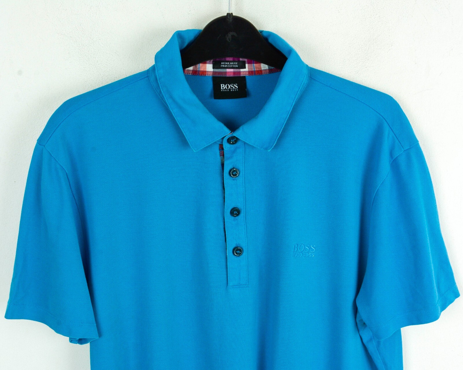 HUGO BOSS Mens L Polo Shirt Short Sleeve Blue Summer Casual Top Cotton