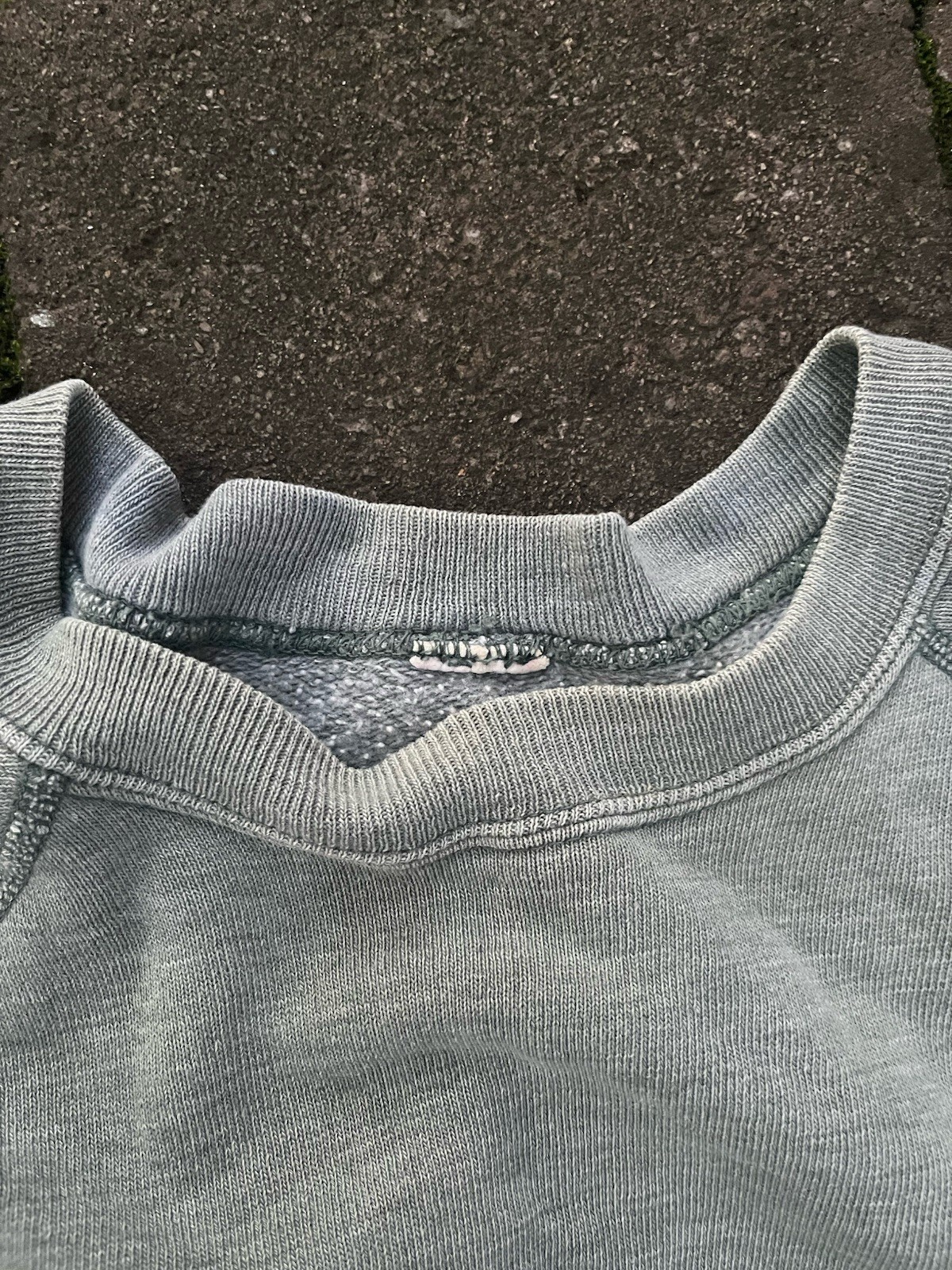 VTG 60s USA Made Faded Green Short Sleeve Blank Raglan Sweatshirt Sz Small/Med