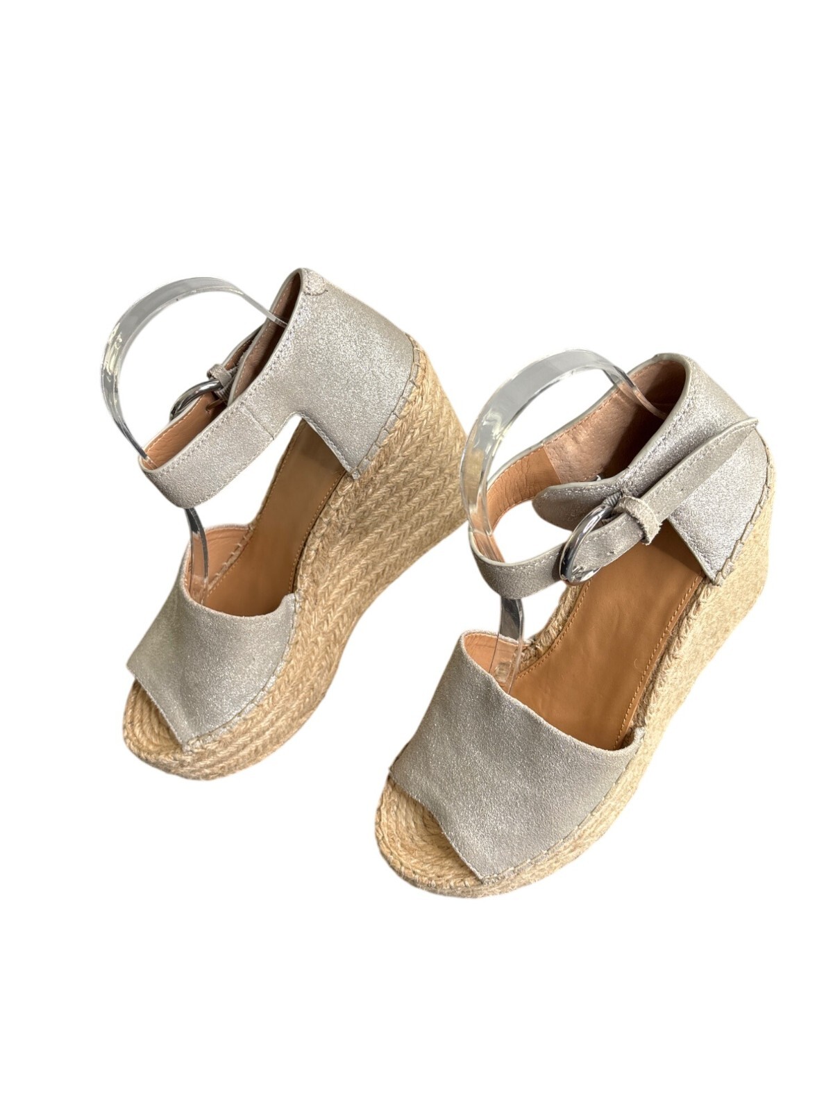 Marc Fisher Women's Alida Silver Leather Open Toe Espadrille Wedge Size 10