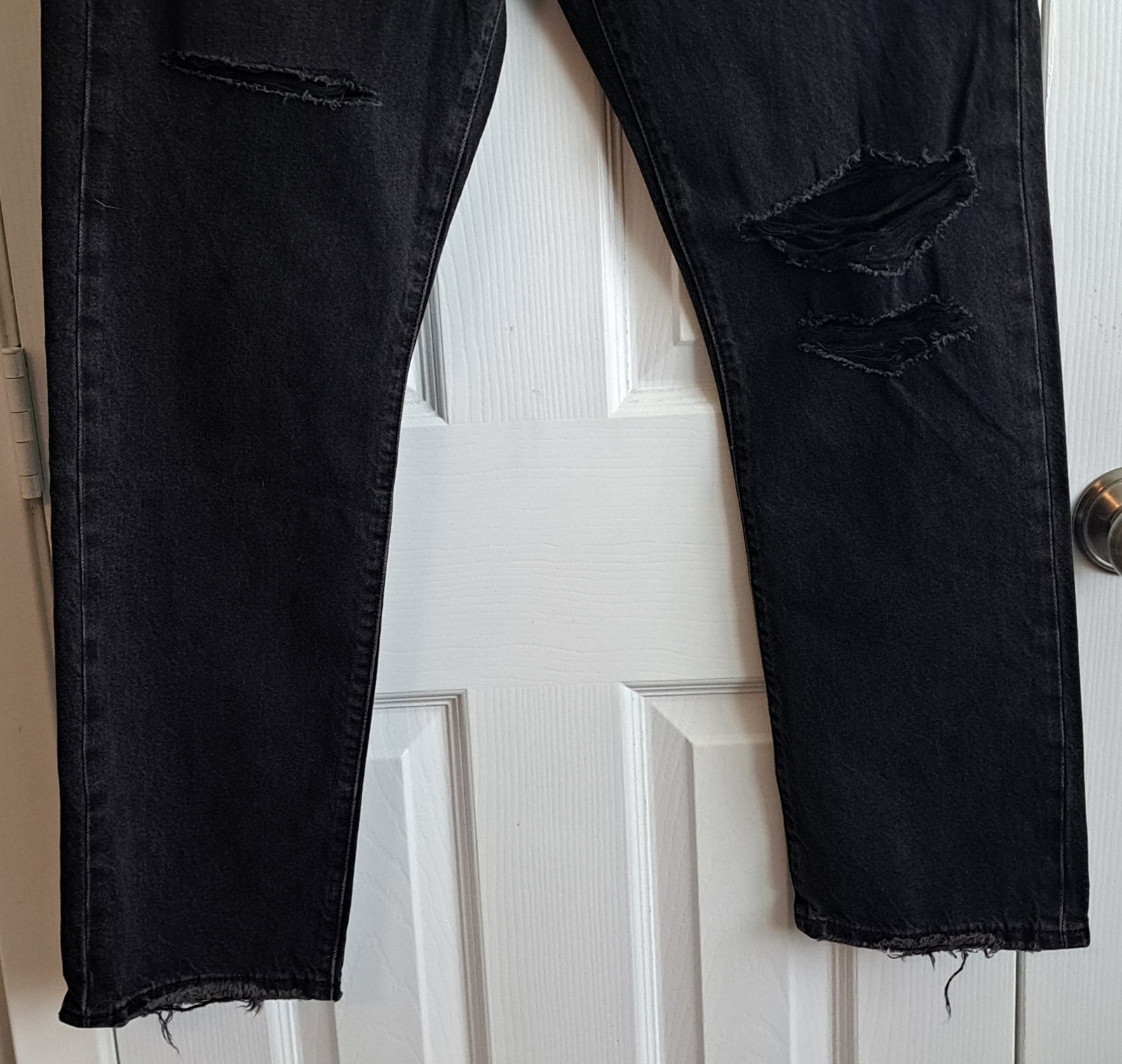 как выглядит Levi s 501 Original Jeans Women 29x28 Black Button Fly Straight Distressed NWT фото