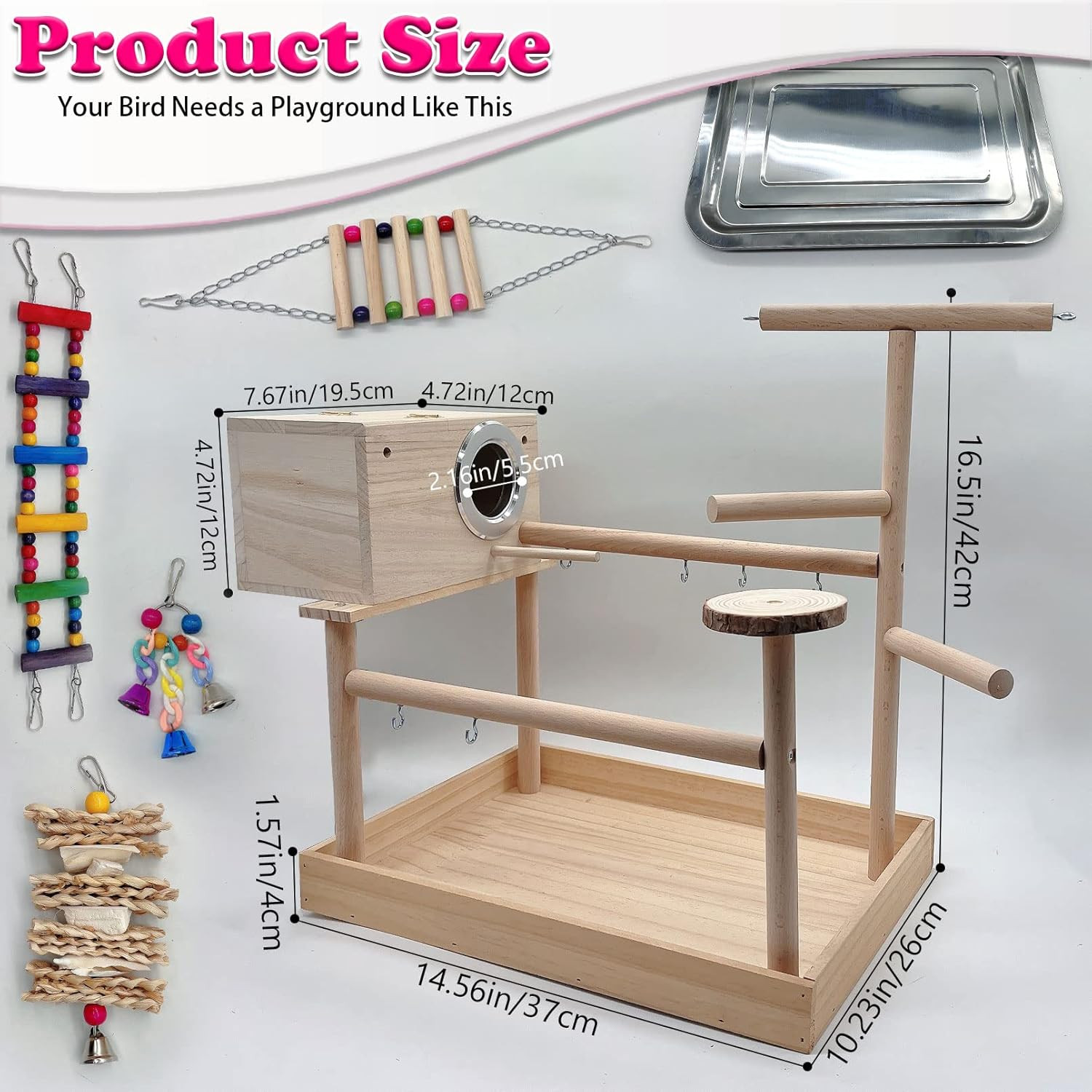 Bird Playground,Parrot Play Stand,Parakeet Play Gym with Breeding Box and Food C