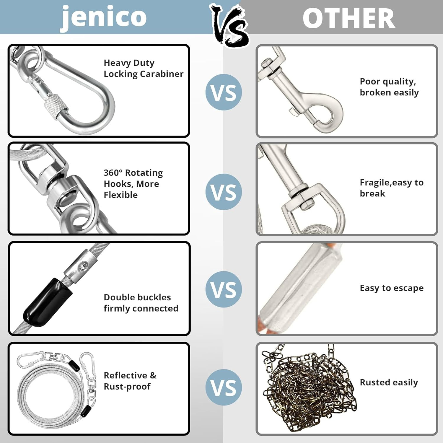 Jenico Dog Tie Out Cable: 15 Ft Dog Lead for Yard - Heavy Duty Chain Leash outsi