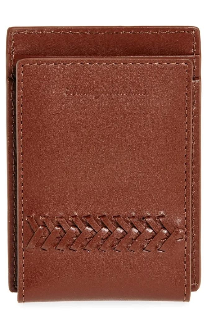 75 - Tommy Bahama Magnetic Money Card Leather Wallet in Tan