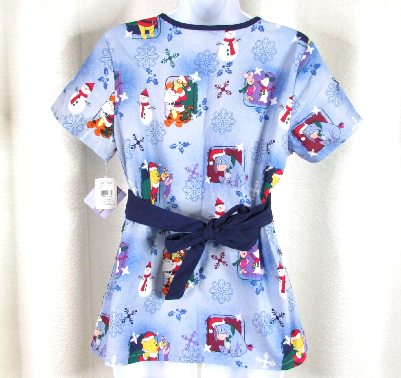 NWT Disney Winnie Pooh Scrub Top Women's S Belted Christmas Holiday 100 Cotton