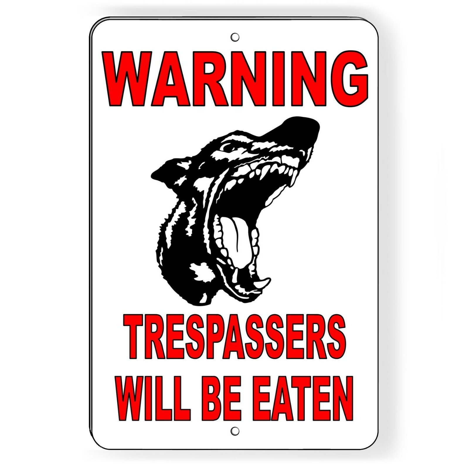 Beware Of Dog Trespassers Will Be Eaten Metal Sign security warning attack BD017