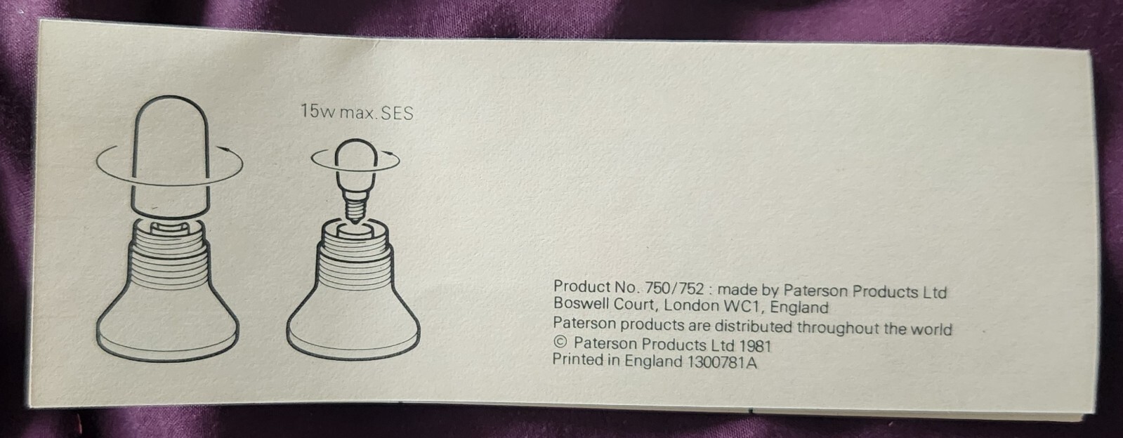 Darkroom Safelight - Paterson - Red Light 15w - 6 tall