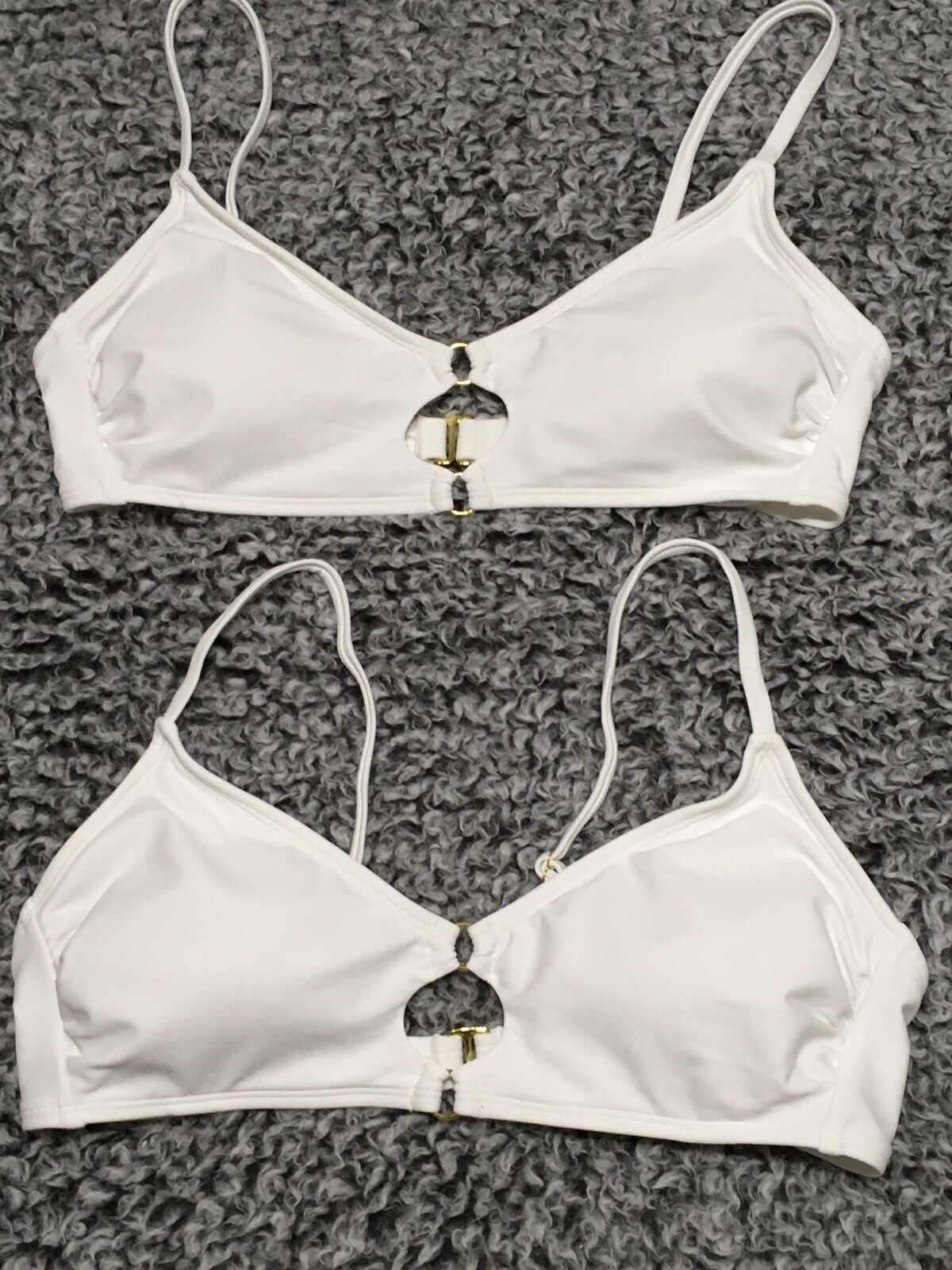 2- Wild Fable Size S 4-6 White Adjustable Strap Removable Pads Bikini Top