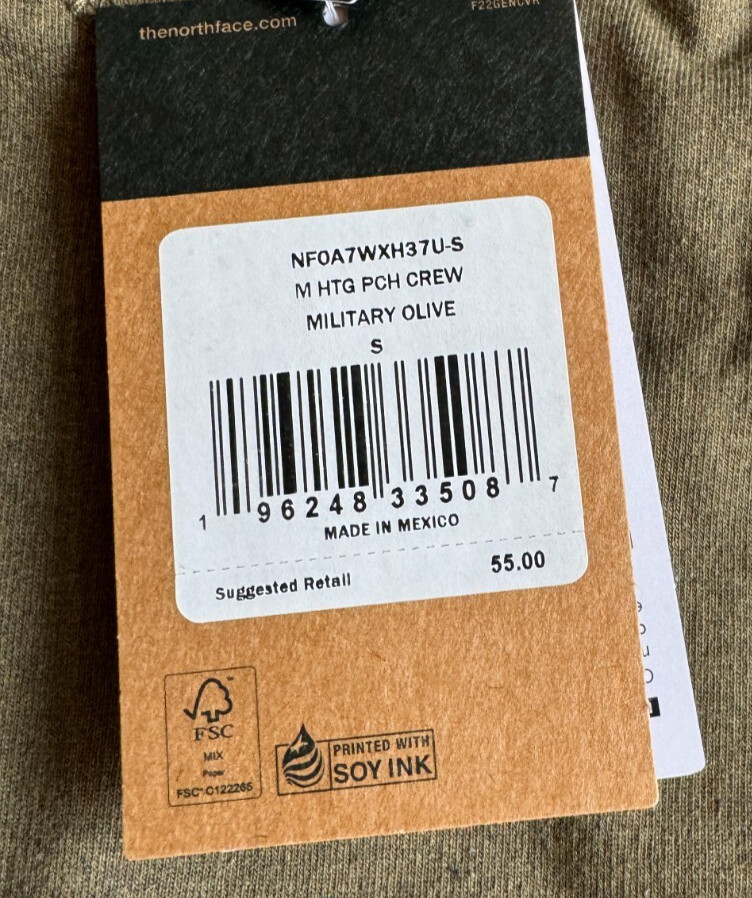 NWT Mens The North Face Heritage Patch Fleece Crewneck Sweatshirt Military Olive