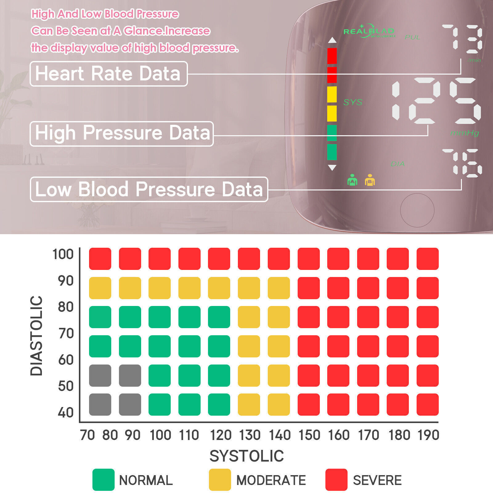 LED Wrist Blood Pressure Monitor Rechargeable Broadcast Heart Rate Monitor Pink