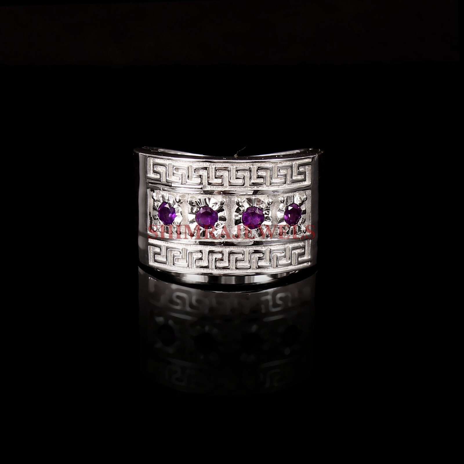 Natural Amethyst Gemstone with 925 Sterling Silver Ring for Men's 880