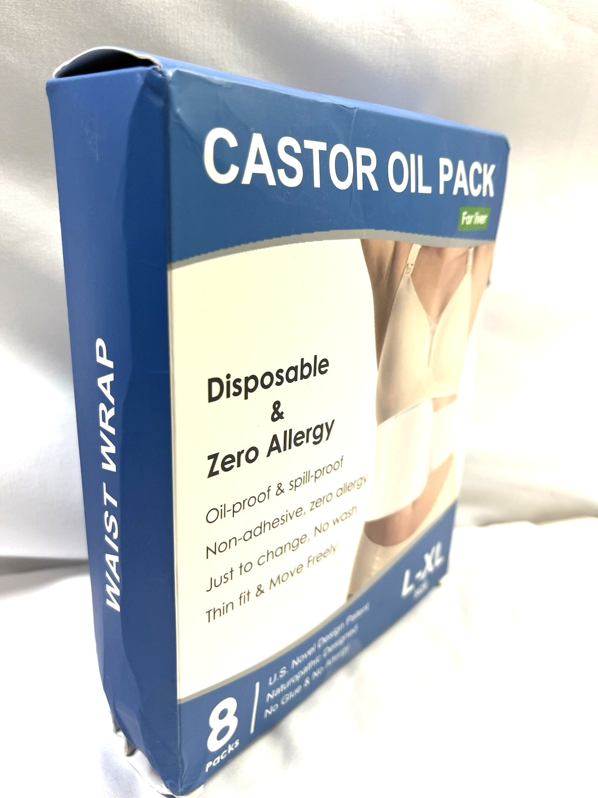 Organic Cotton Castor Oil Pack Wrap Hypoallergenic Adhesive-Free, 8 Disposable