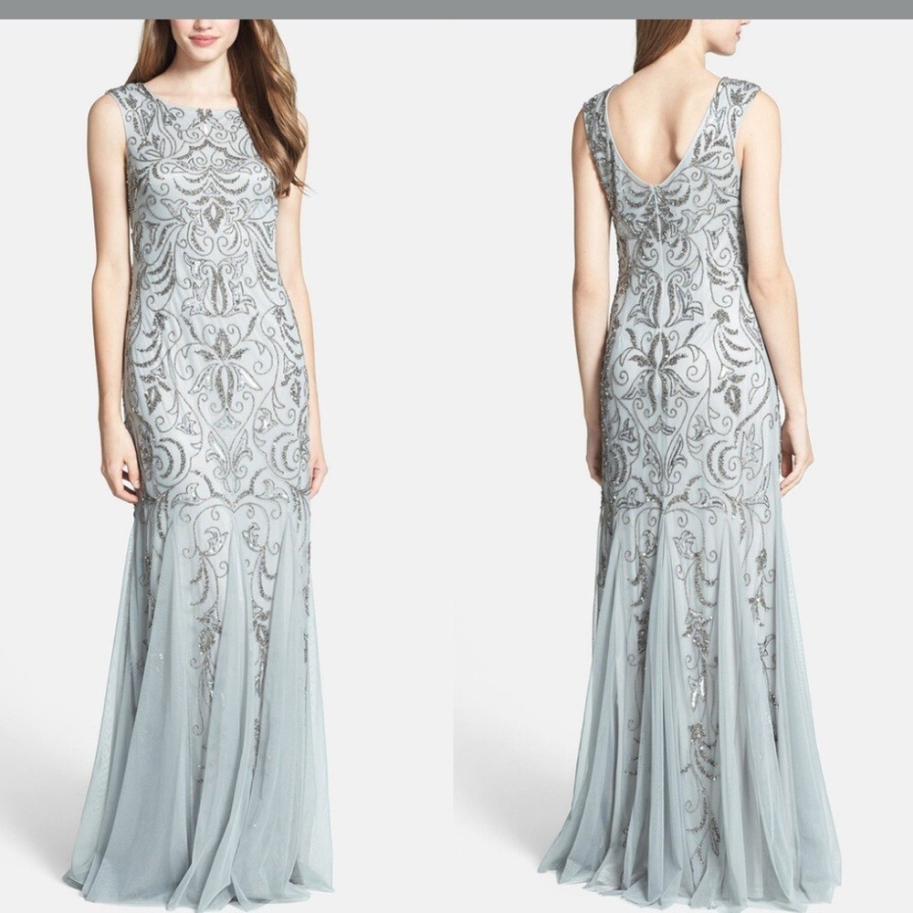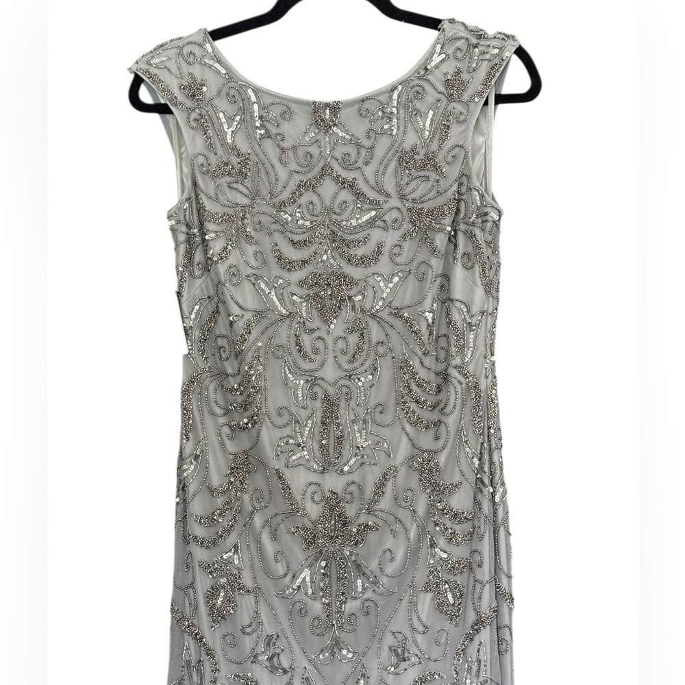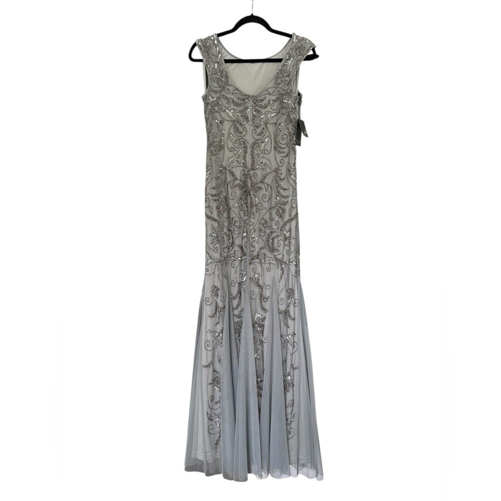 как выглядит NWT Adrianna Papell Silver Gray Fully Beaded Embellished Mermaid Gown Size 10 фото